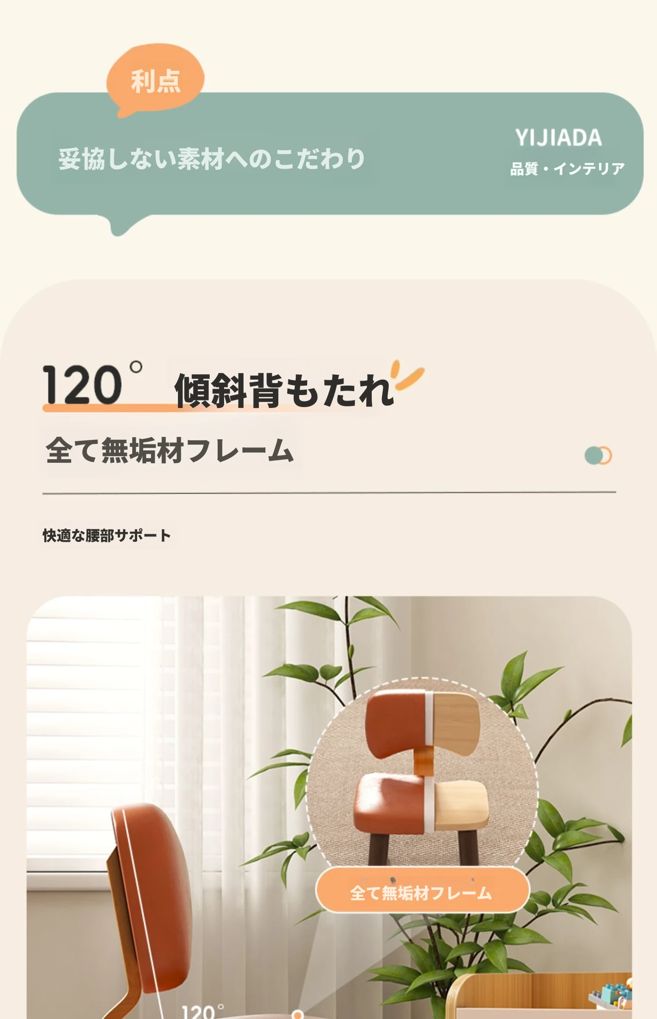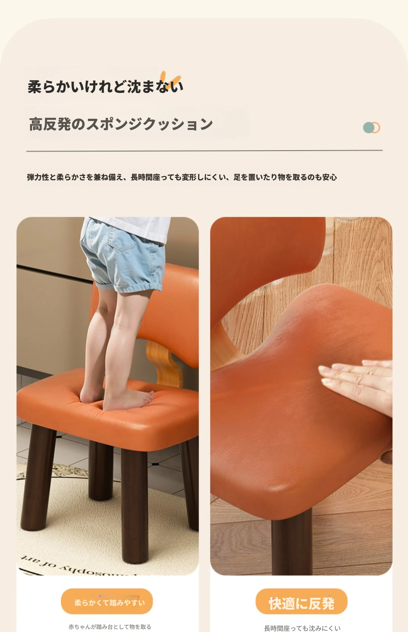 子供用【背もたれ付きスツール】オレンジ 高さ20CM