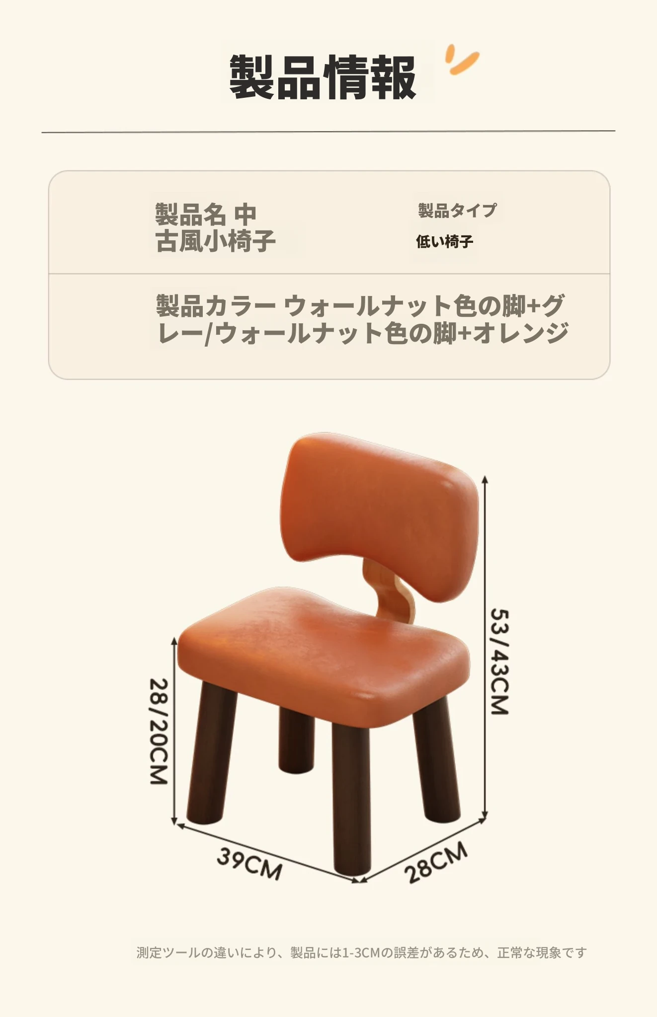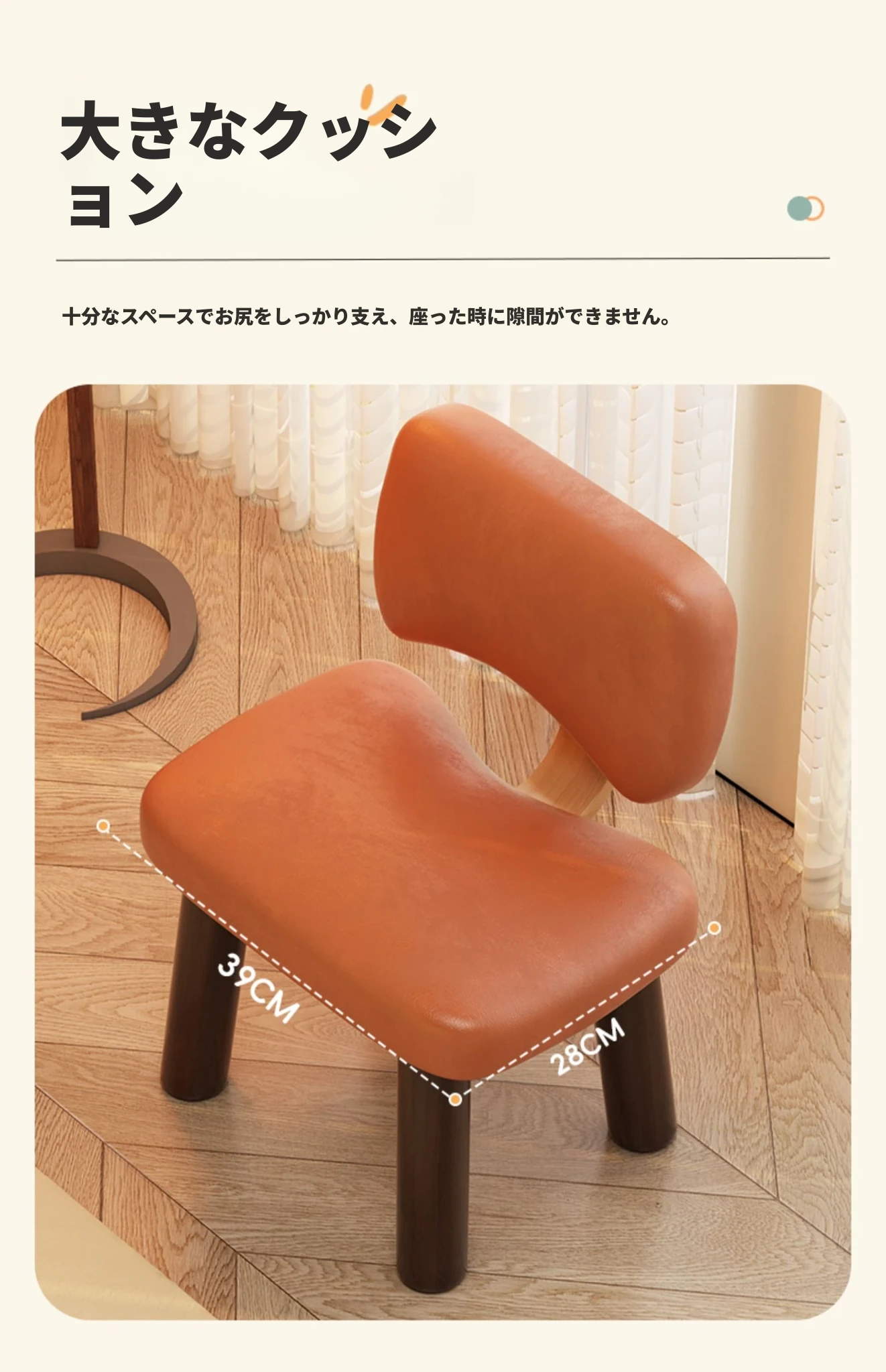 大人用【背もたれ付きスツール】オレンジ 高さ28CM