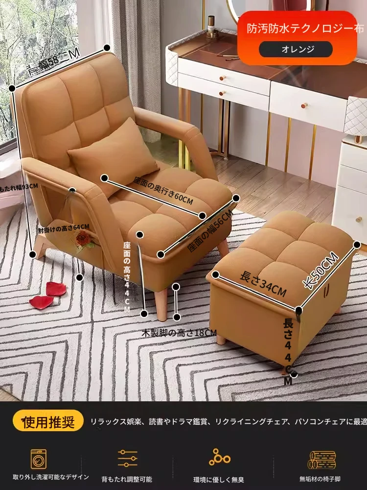 オレンジ色ソファ+オットマン(アップグレード版キャットクロー皮生地)