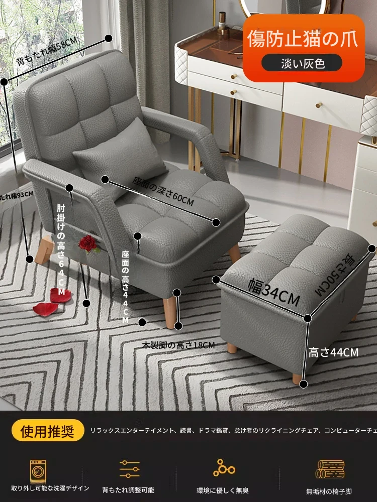 薄灰色ソファ+オットマン(アップグレード版キャットクロー皮生地)