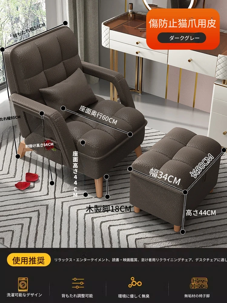 濃灰色ソファ+オットマン(アップグレード版キャットクロー皮生地)