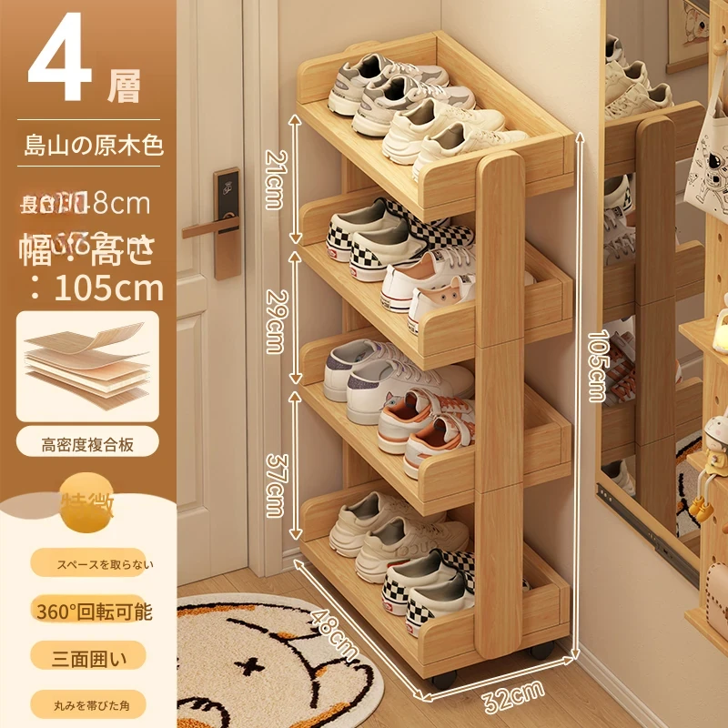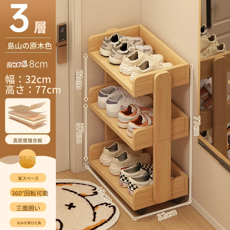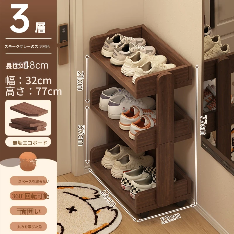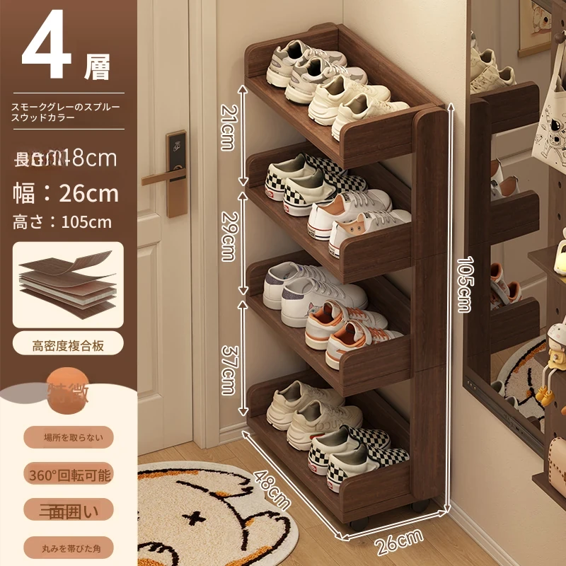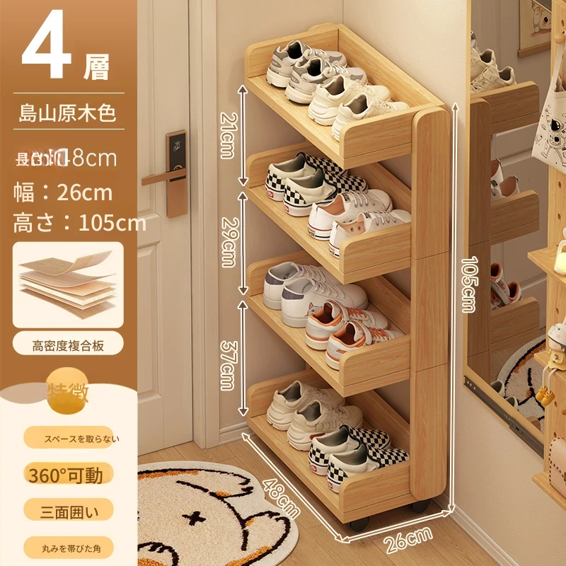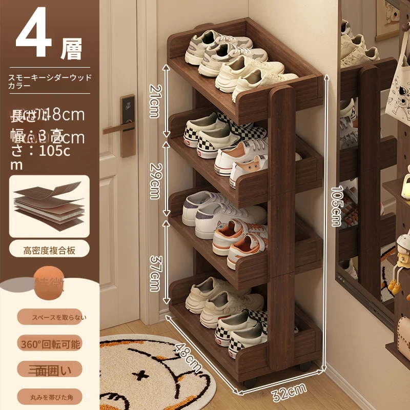玄関スリムシューズラック - スペースを取らず、移動可能!おしゃれなデザインで多層収納、簡単に整理整頓できるシューズキャビネット。狭い場所にもピッタリです!