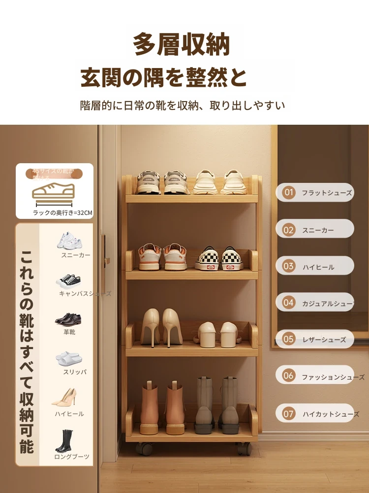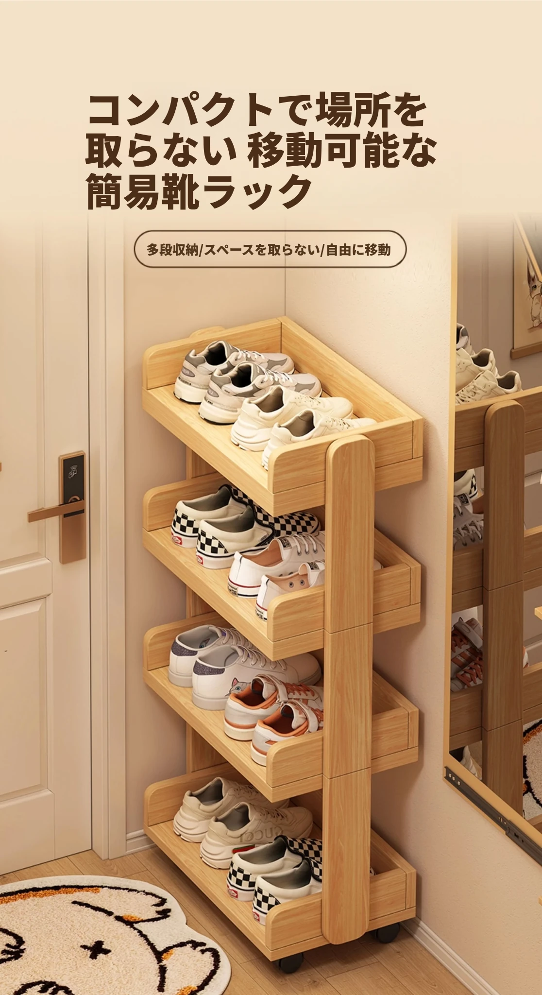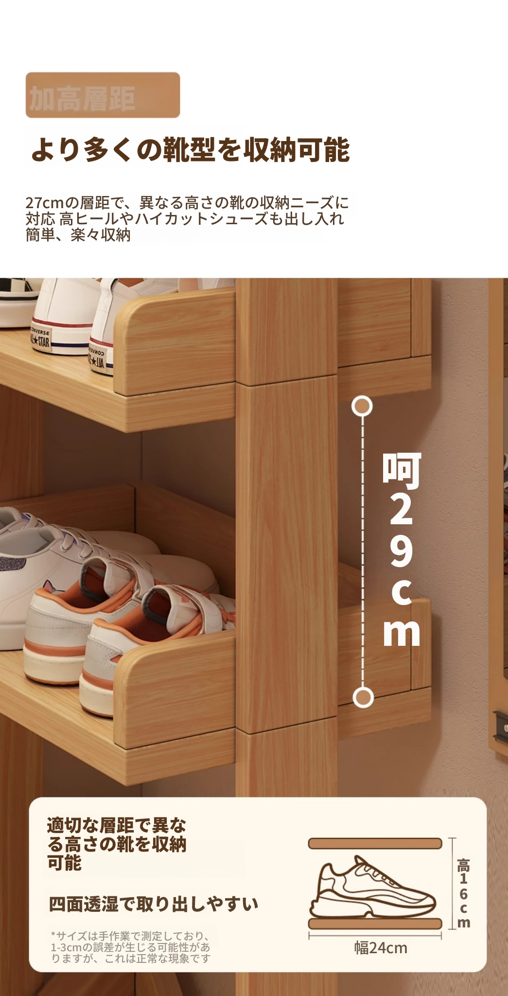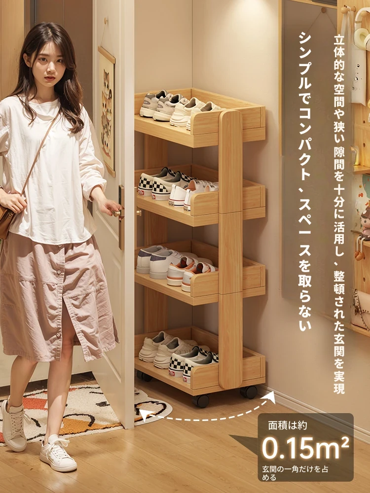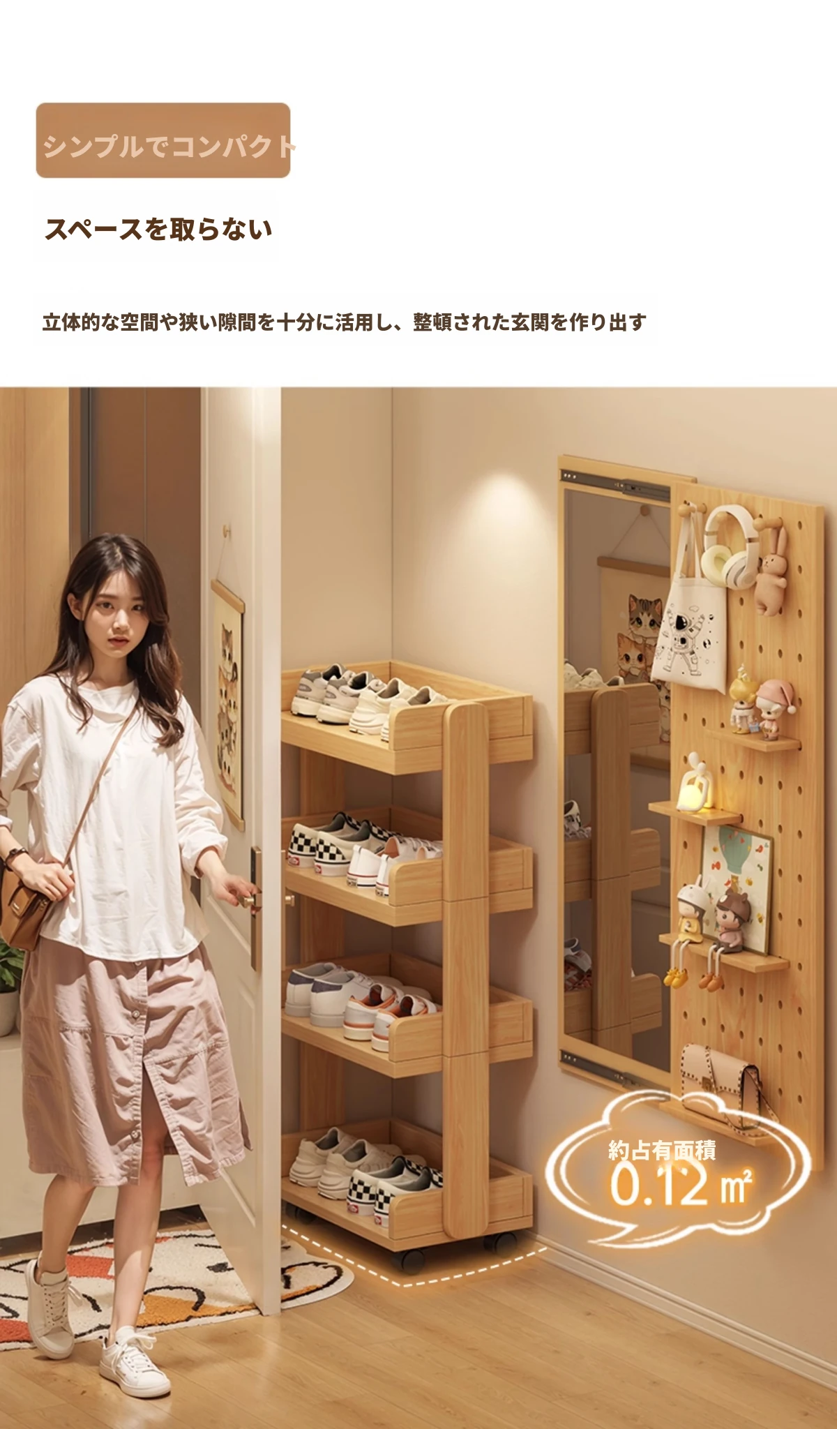 玄関スリムシューズラック - スペースを取らず、移動可能!おしゃれなデザインで多層収納、簡単に整理整頓できるシューズキャビネット。狭い場所にもピッタリです!