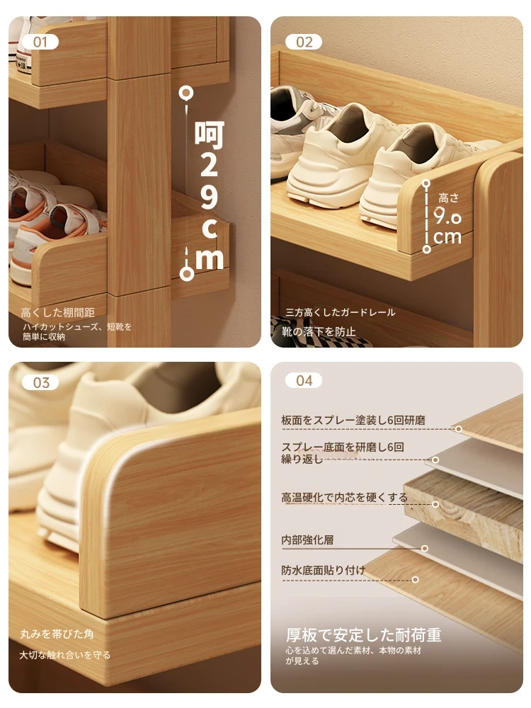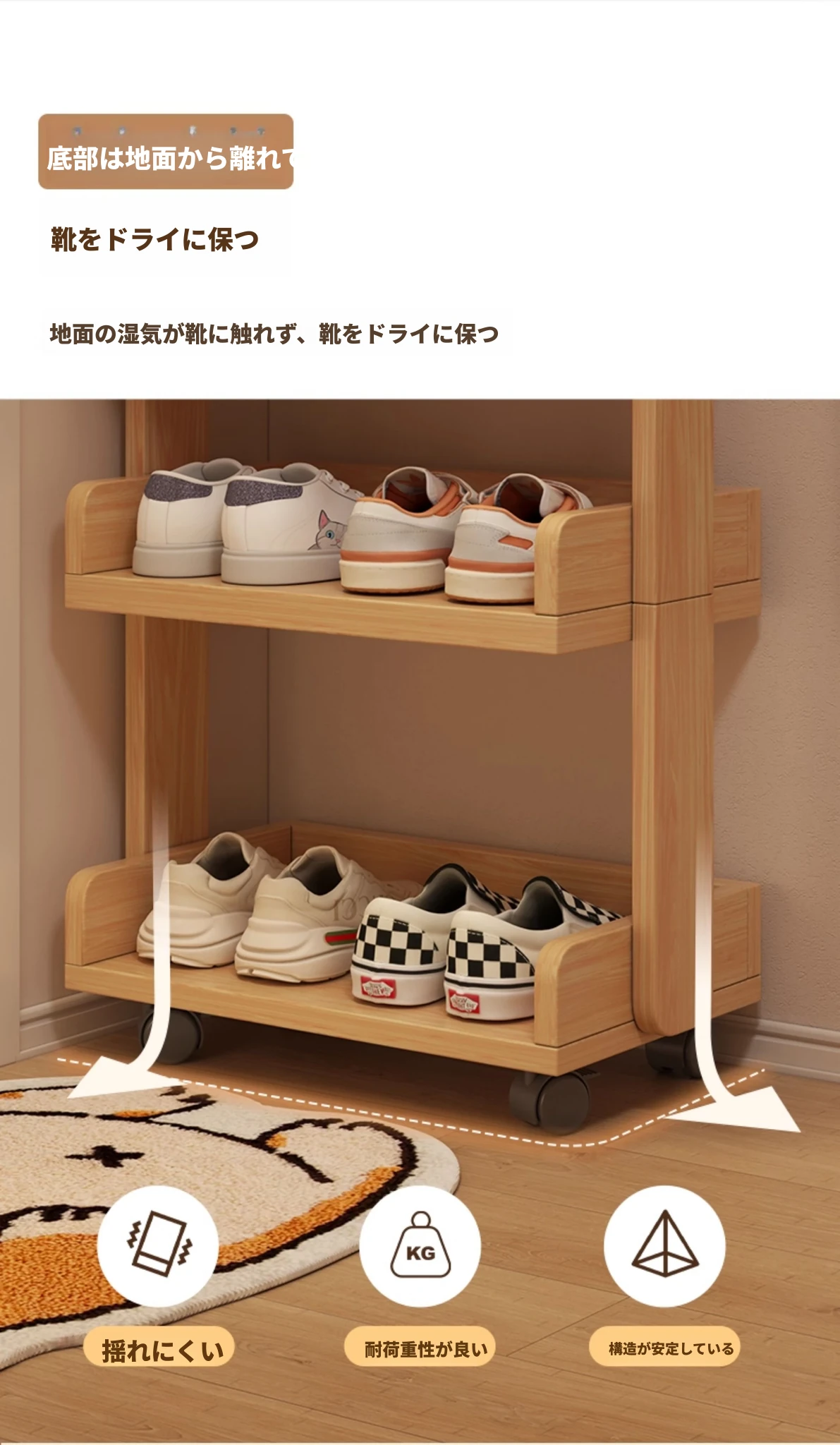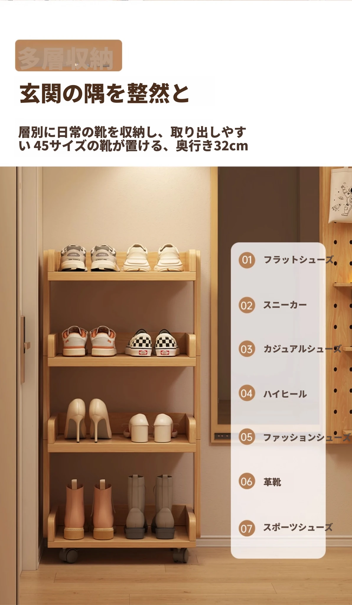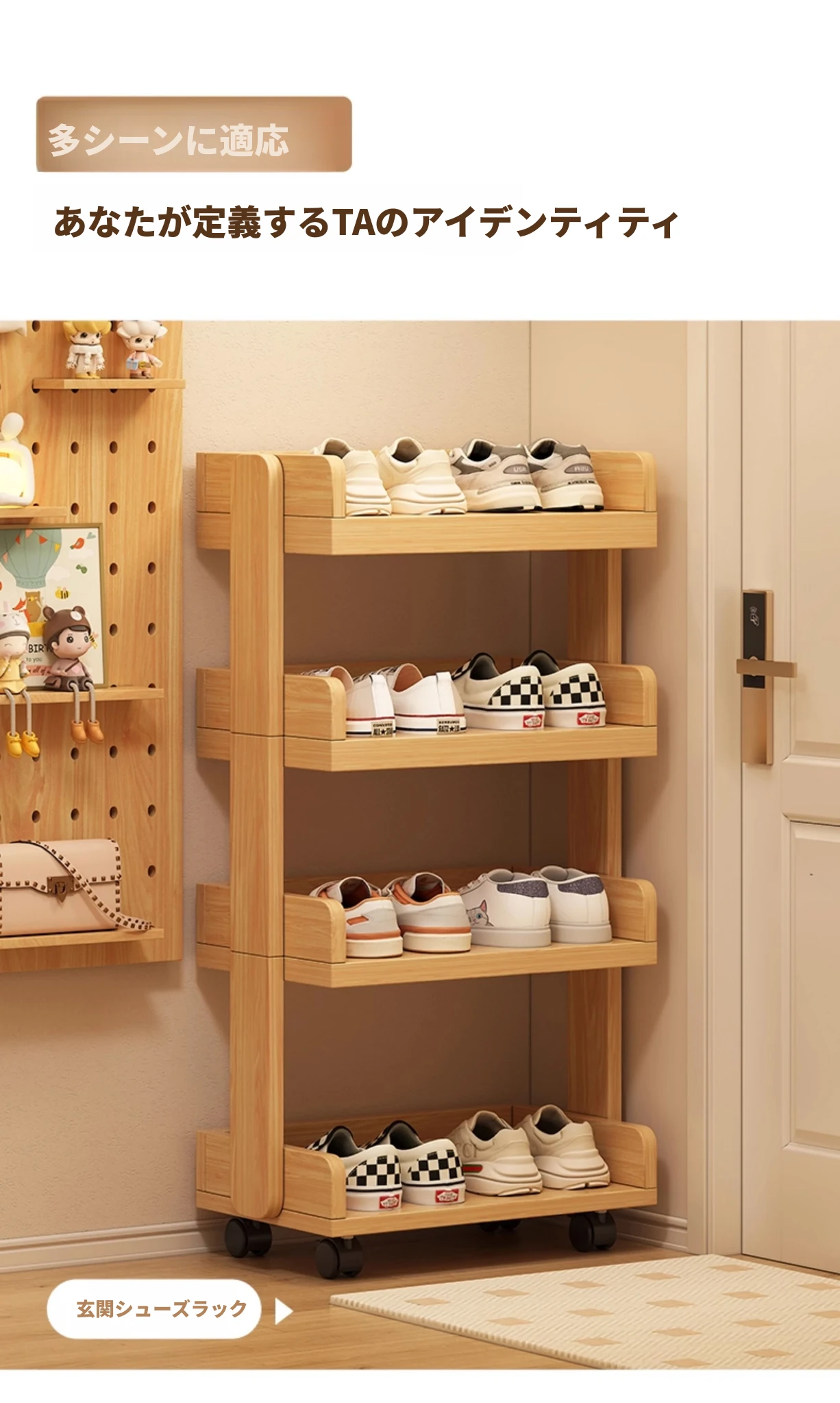 玄関スリムシューズラック - スペースを取らず、移動可能!おしゃれなデザインで多層収納、簡単に整理整頓できるシューズキャビネット。狭い場所にもピッタリです!