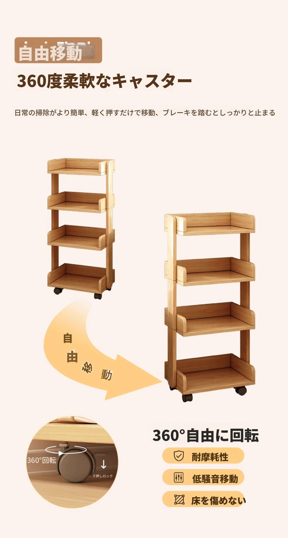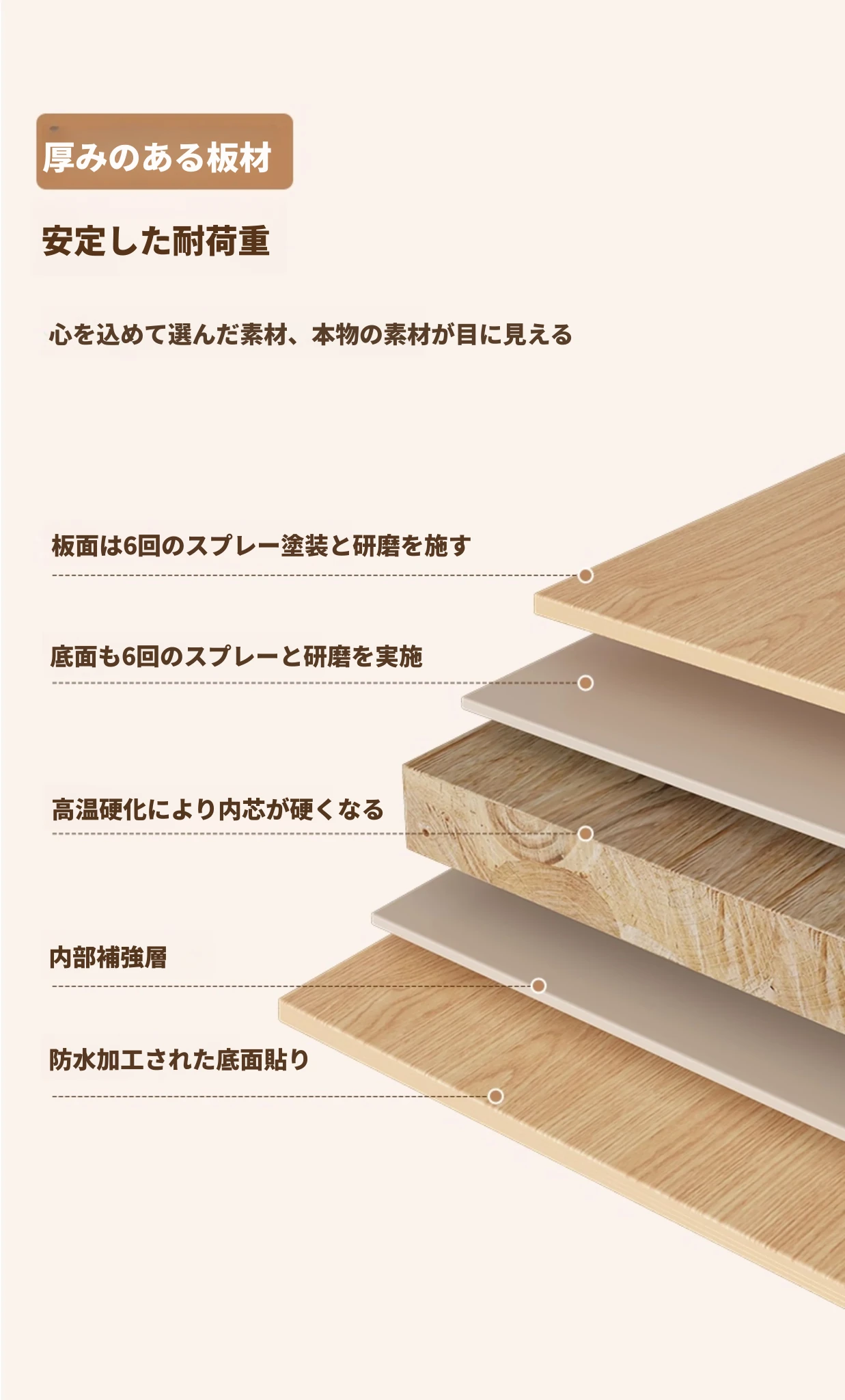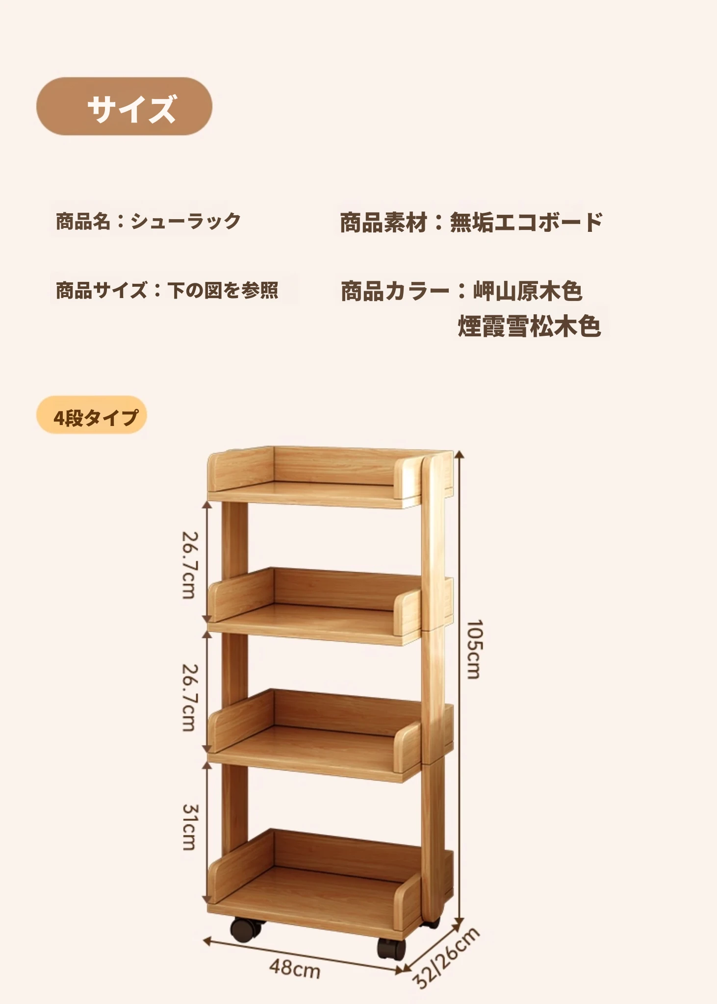 【主画像❤四段タイプ】屿山原木色48*32*105cm(高密度複合板)