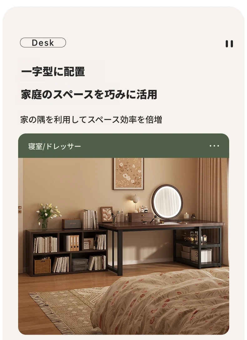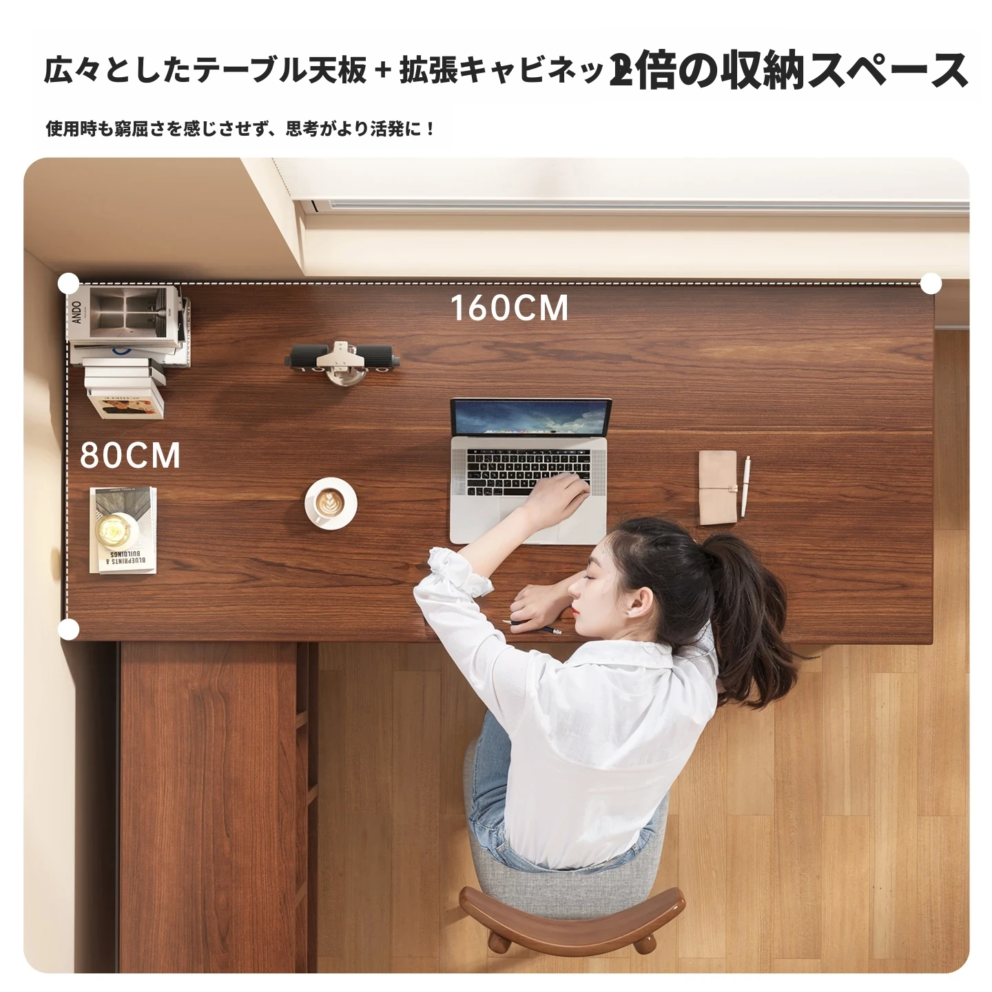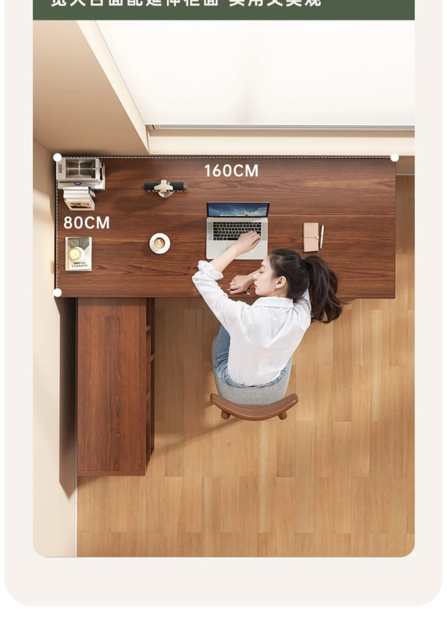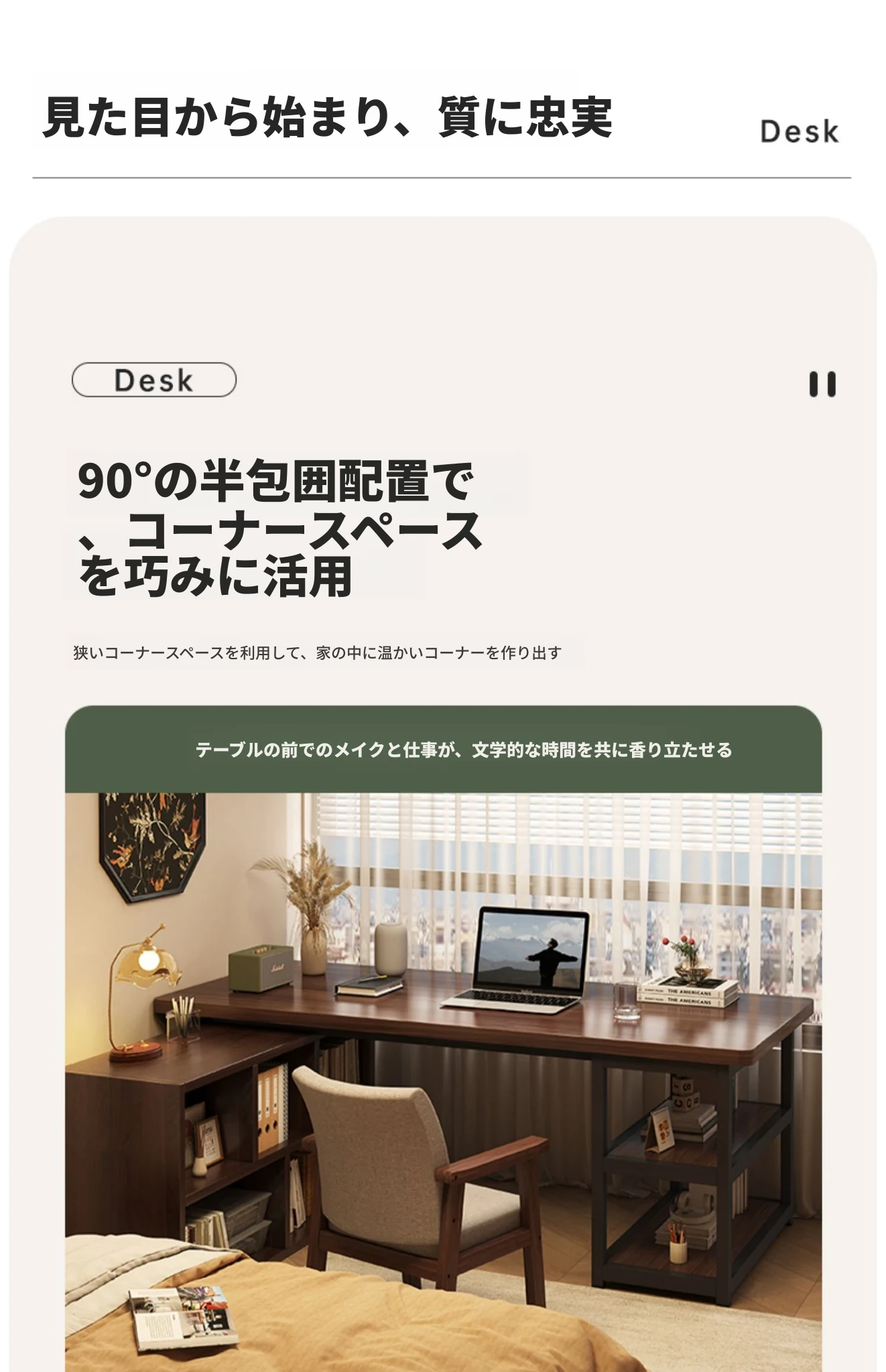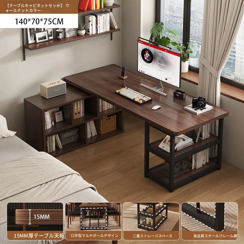 小型スペースに最適!家用寝室用ベッドサイドテーブル兼書棚・デスク一体型、壁にぴったりフィットするコーナーデスクでリビングにもぴったりなロングデスクです。おしゃれで機能的なデザインで、あなたの生活空間を快適にします!