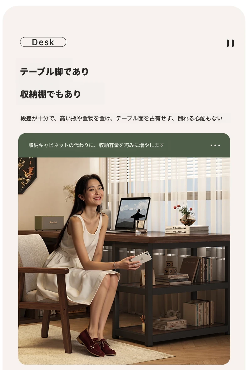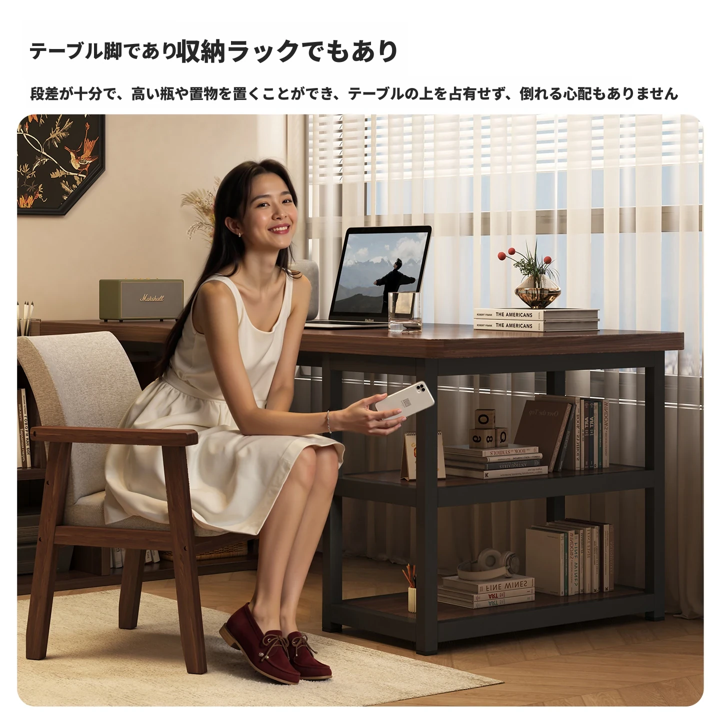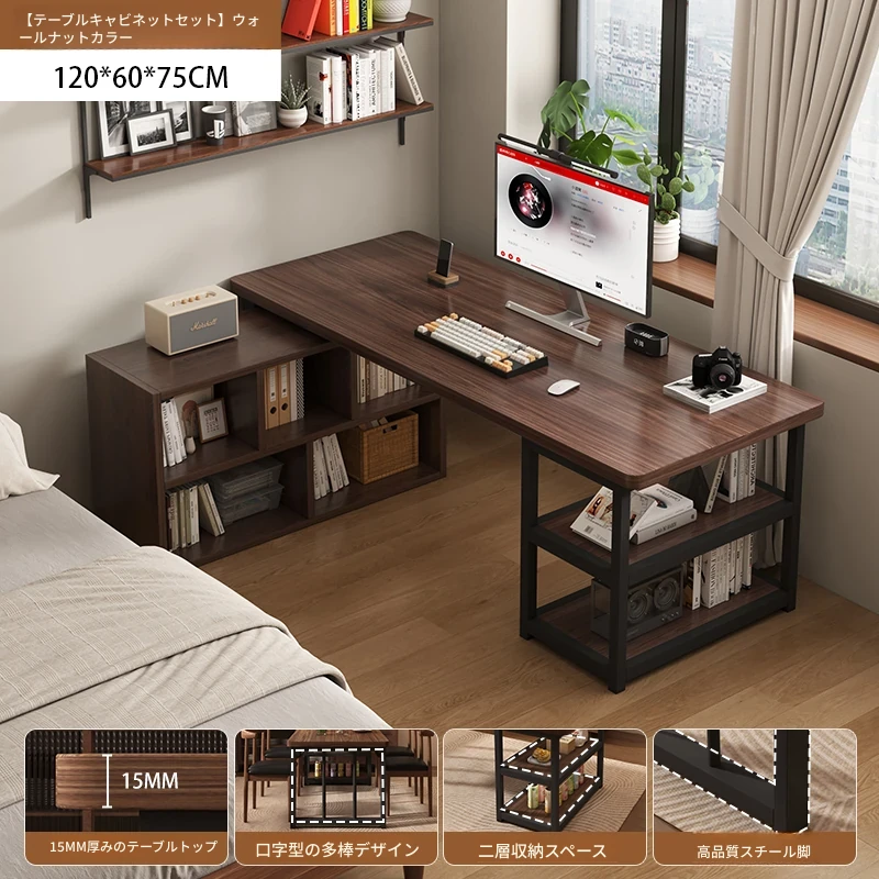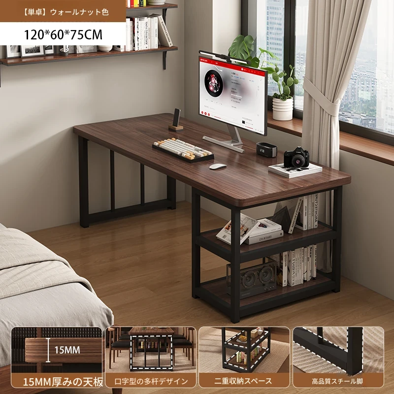 【新型収納テーブル❤口字型スチール脚】ブラックウォールナット色 120*60cm