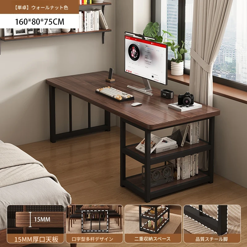 【新型収納テーブル❤口字型スチール脚】ブラックウォールナット色 160*80cm