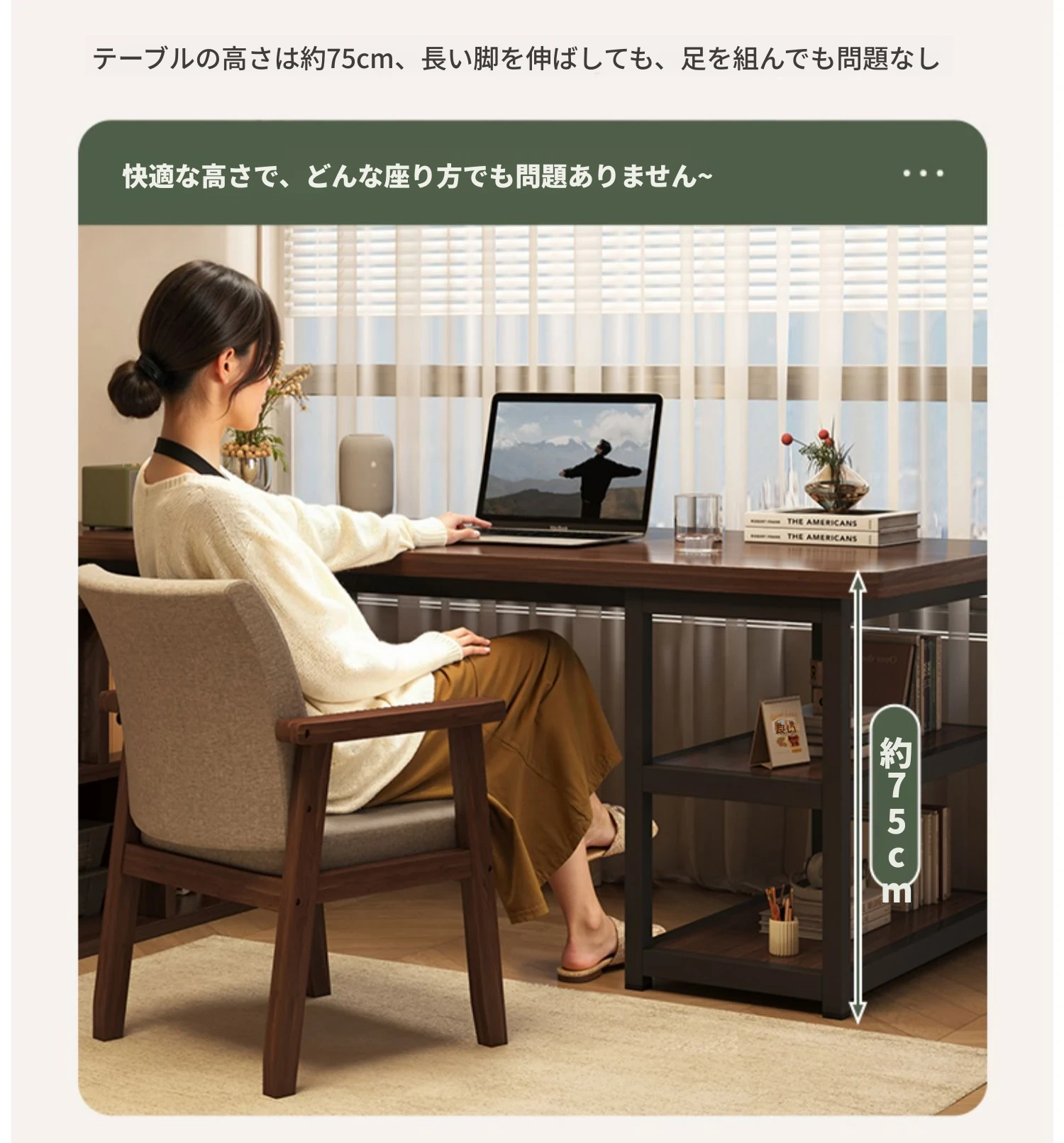 【新型収納テーブル❤口字型スチール脚】ブラックウォールナット色 140*70cm