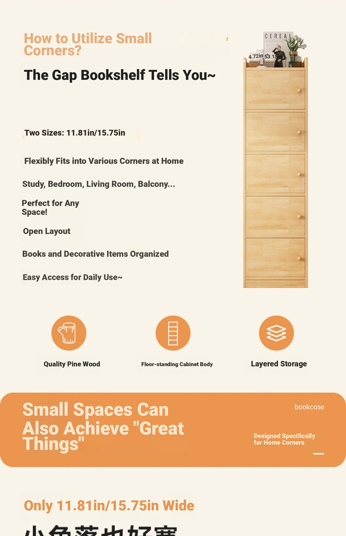 [Selection of pine material★Four layers] 19.69in*9.84in*41.73in log color
