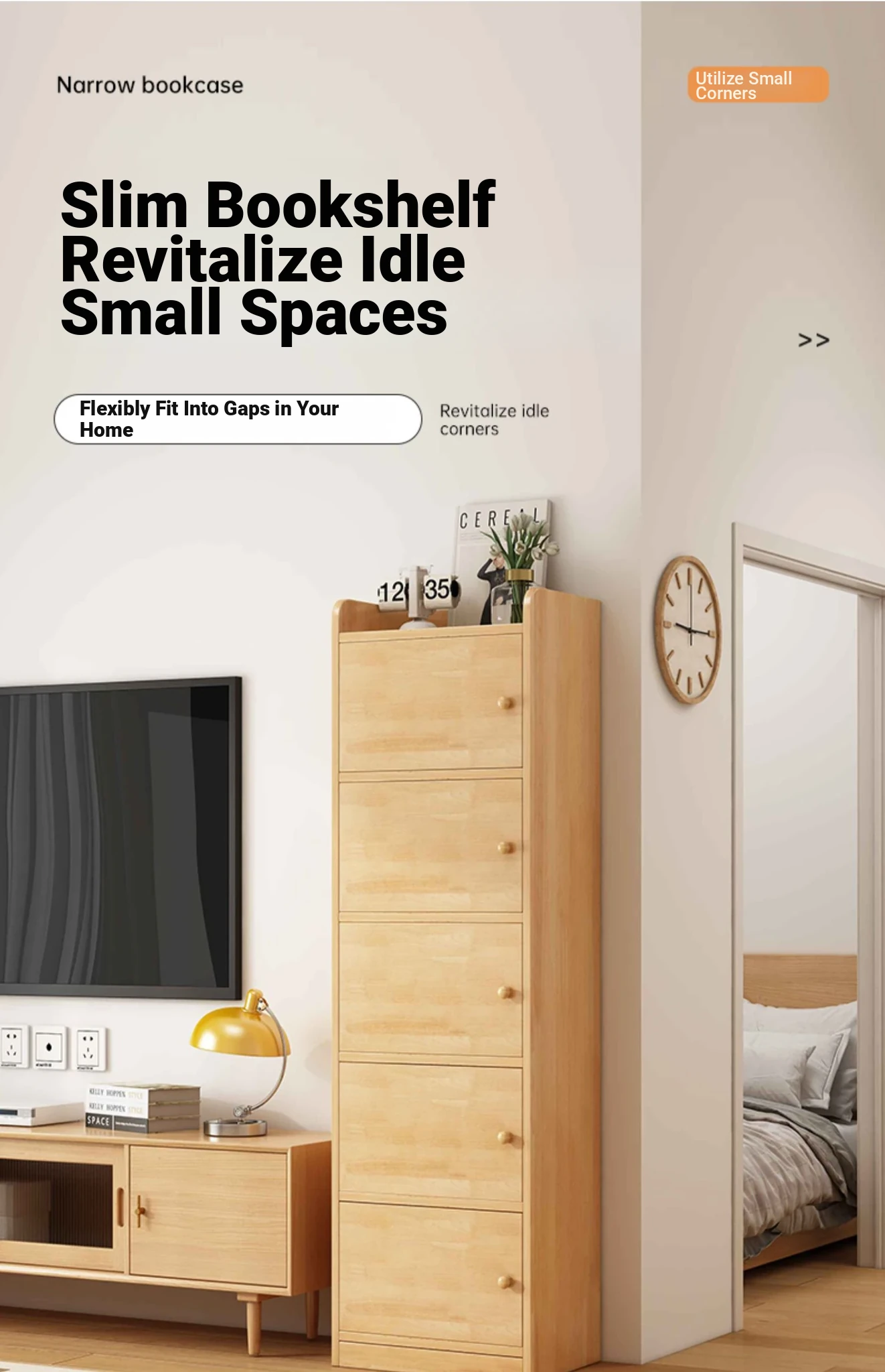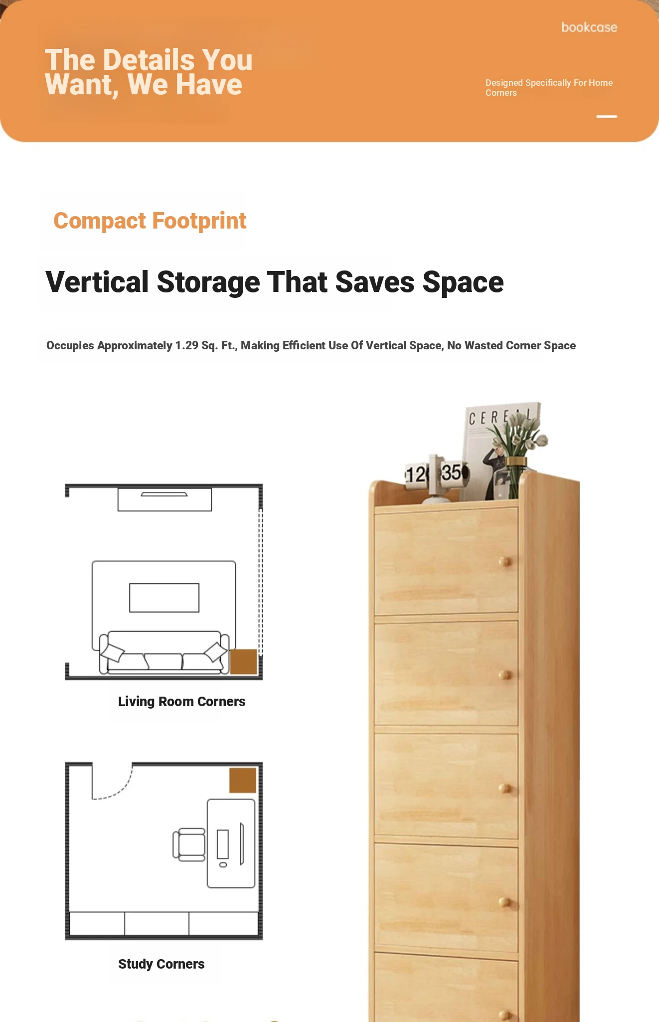 Compact Corner Bookshelf - Floor-standing Storage Rack for Narrow Spaces, Wall-Mounted Cabinet, Ideal for Students and Home Use, Versatile Storage Solution in One Unit
