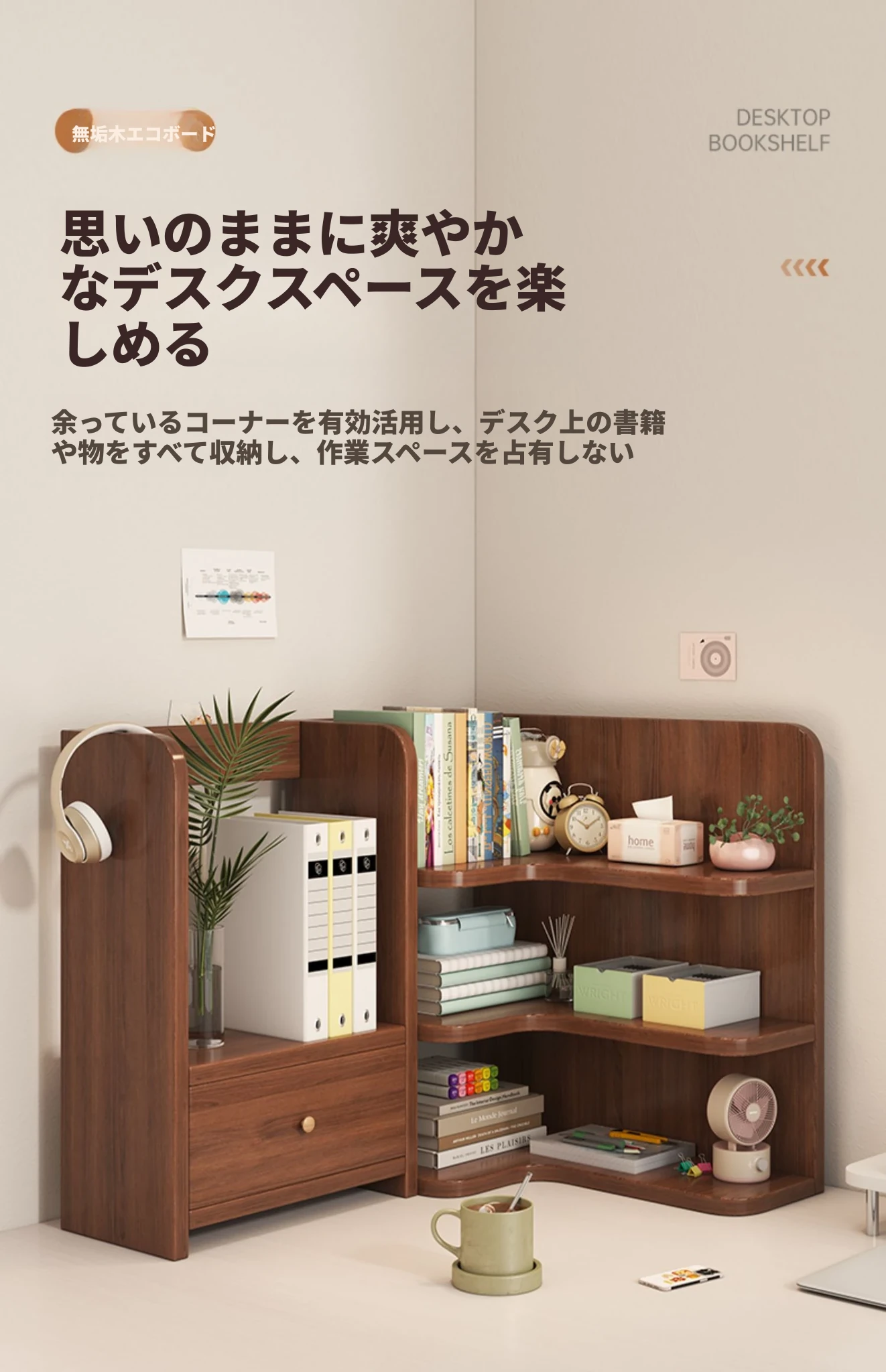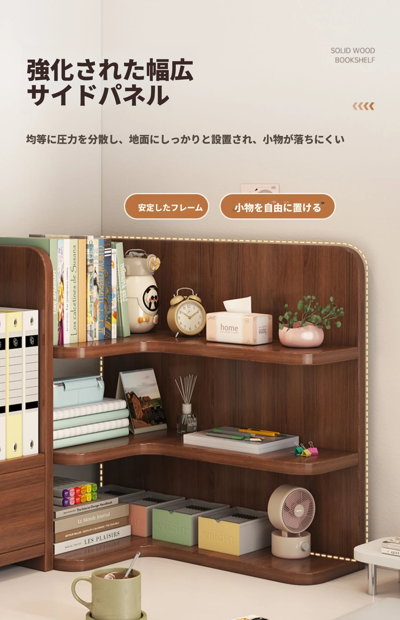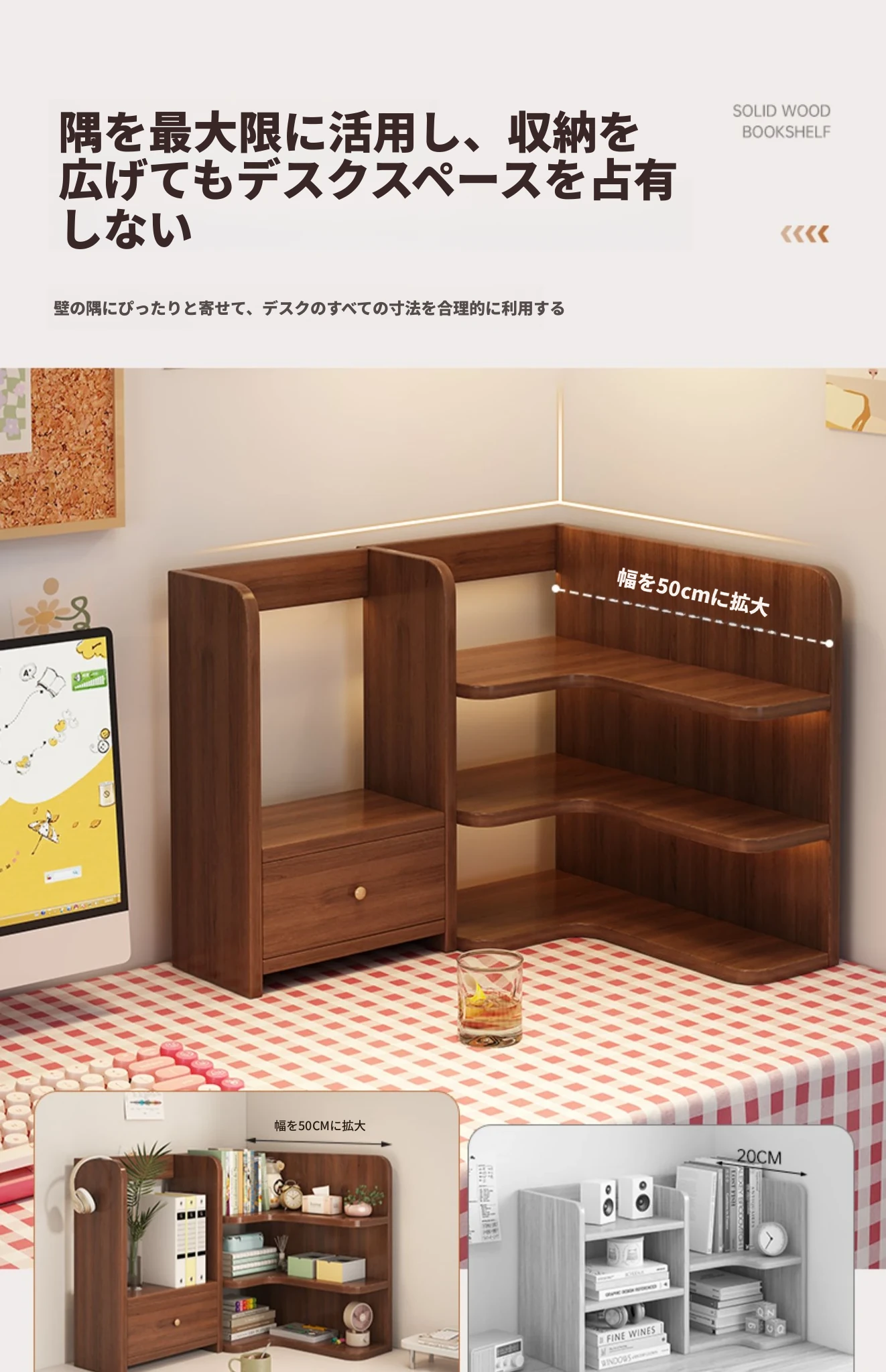 デスク用コーナーシェルフ - オフィスやリビングに最適な多層収納ラック!簡単組み立てで、書籍や小物をスッキリ整理。おしゃれなデザインでお部屋をグレードアップ!