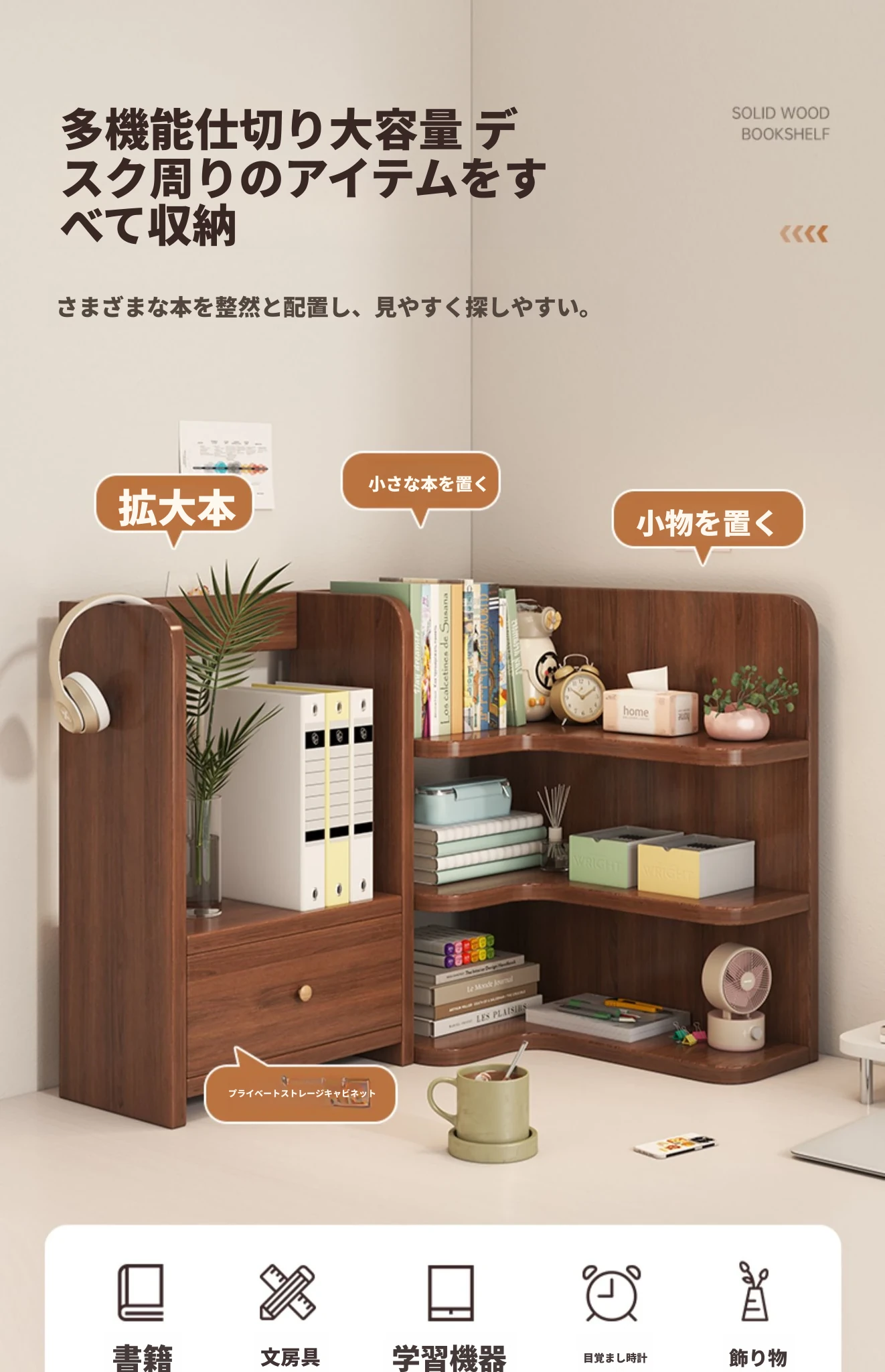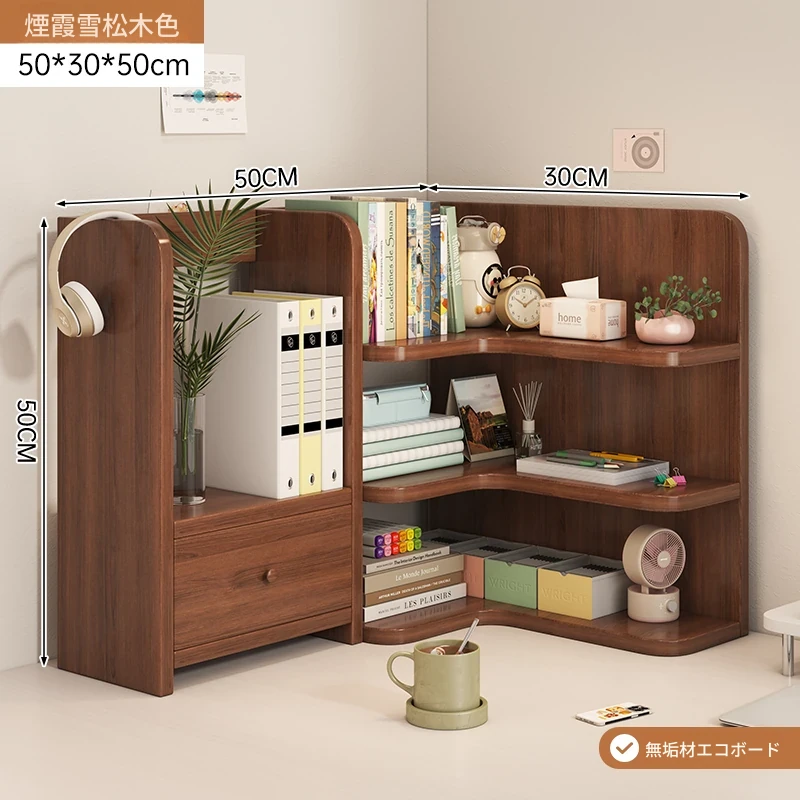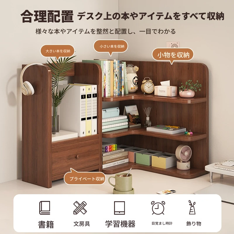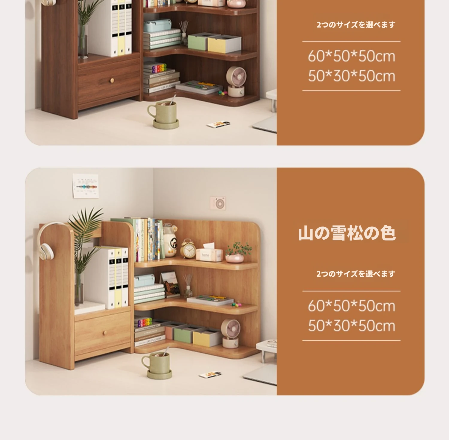 デスク用コーナーシェルフ - オフィスやリビングに最適な多層収納ラック!簡単組み立てで、書籍や小物をスッキリ整理。おしゃれなデザインでお部屋をグレードアップ!