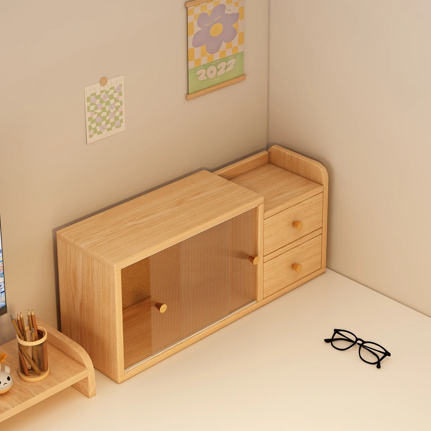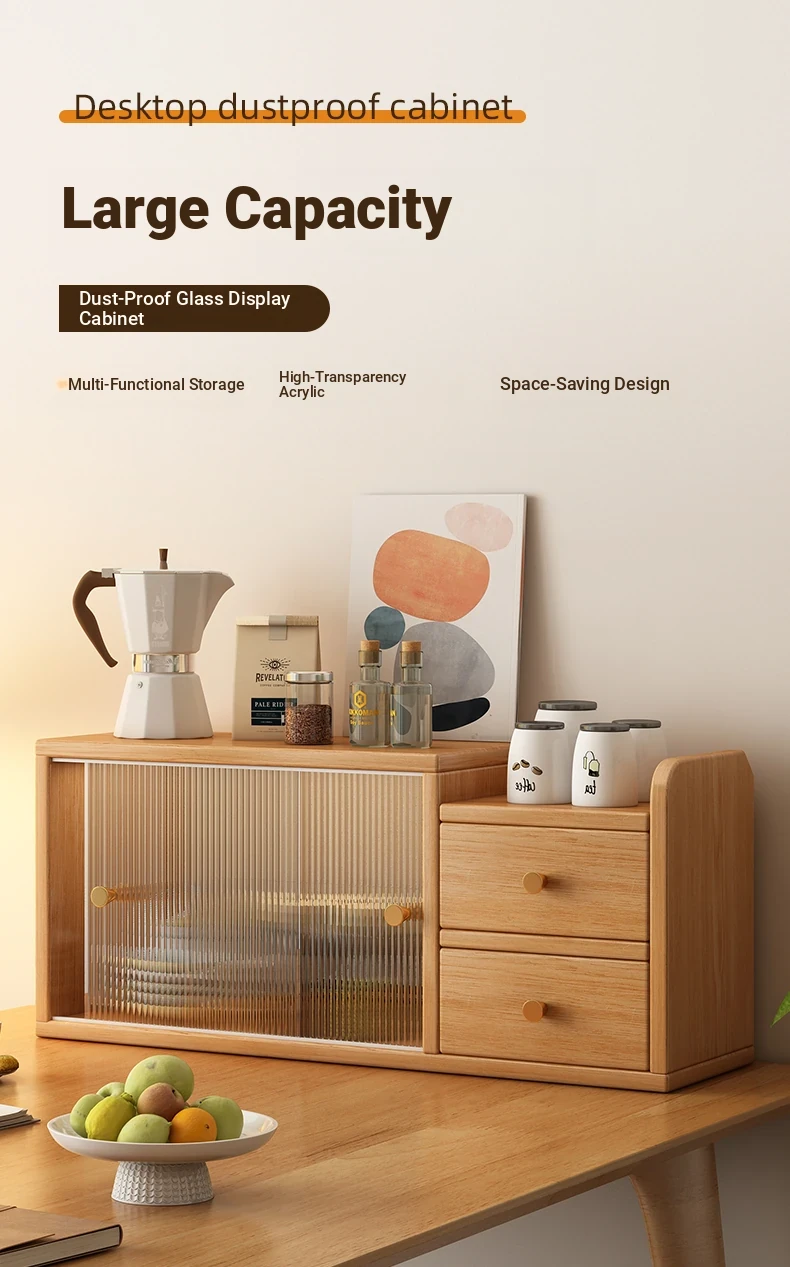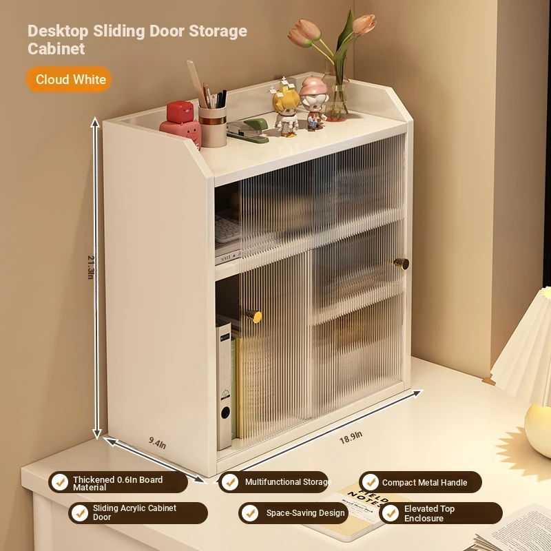 Corner Desktop Bookshelf Storage Cabinet with Drawers - Dustproof Organizer for Home and Office Workspaces, Compact and Stylish Storage Solution