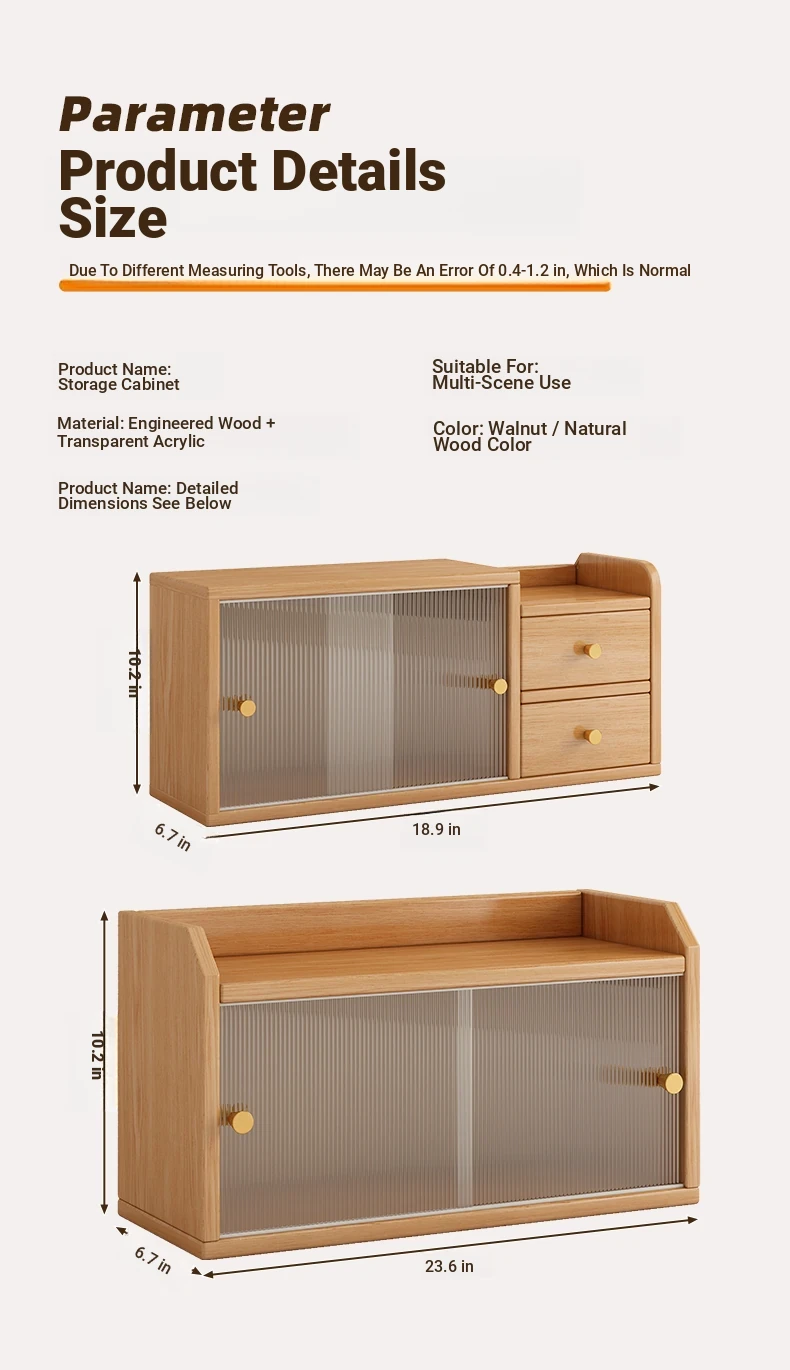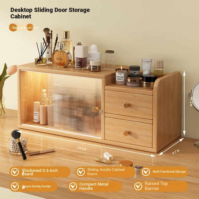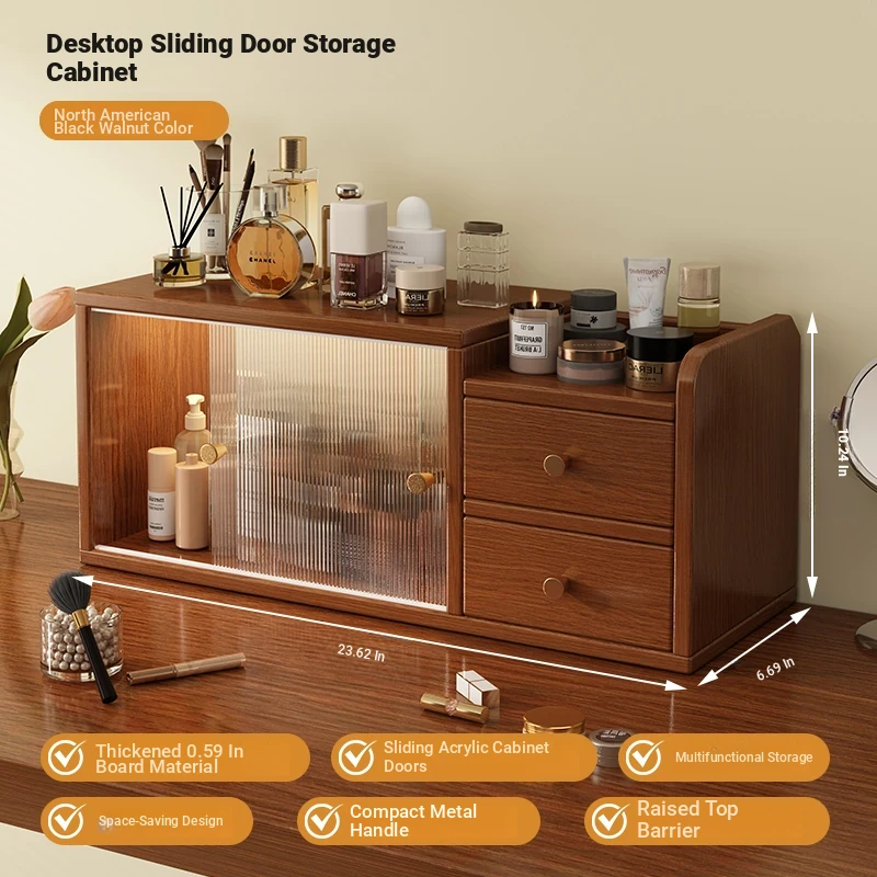 [High permeability sliding door 2 cabinet door⭐Double layer] log color 23.62in*6.69in*10.24in
