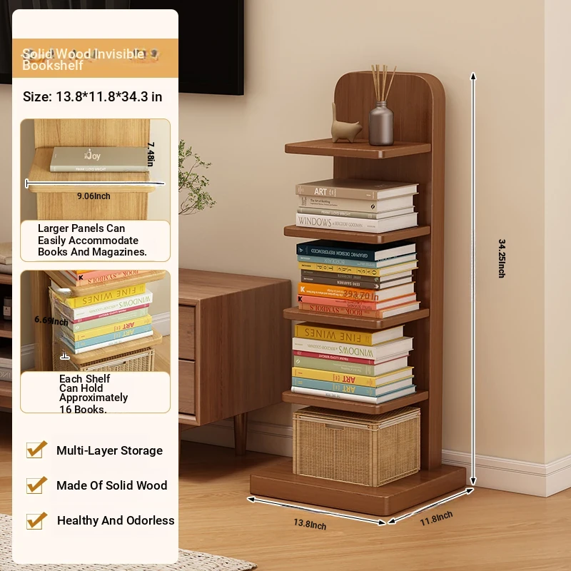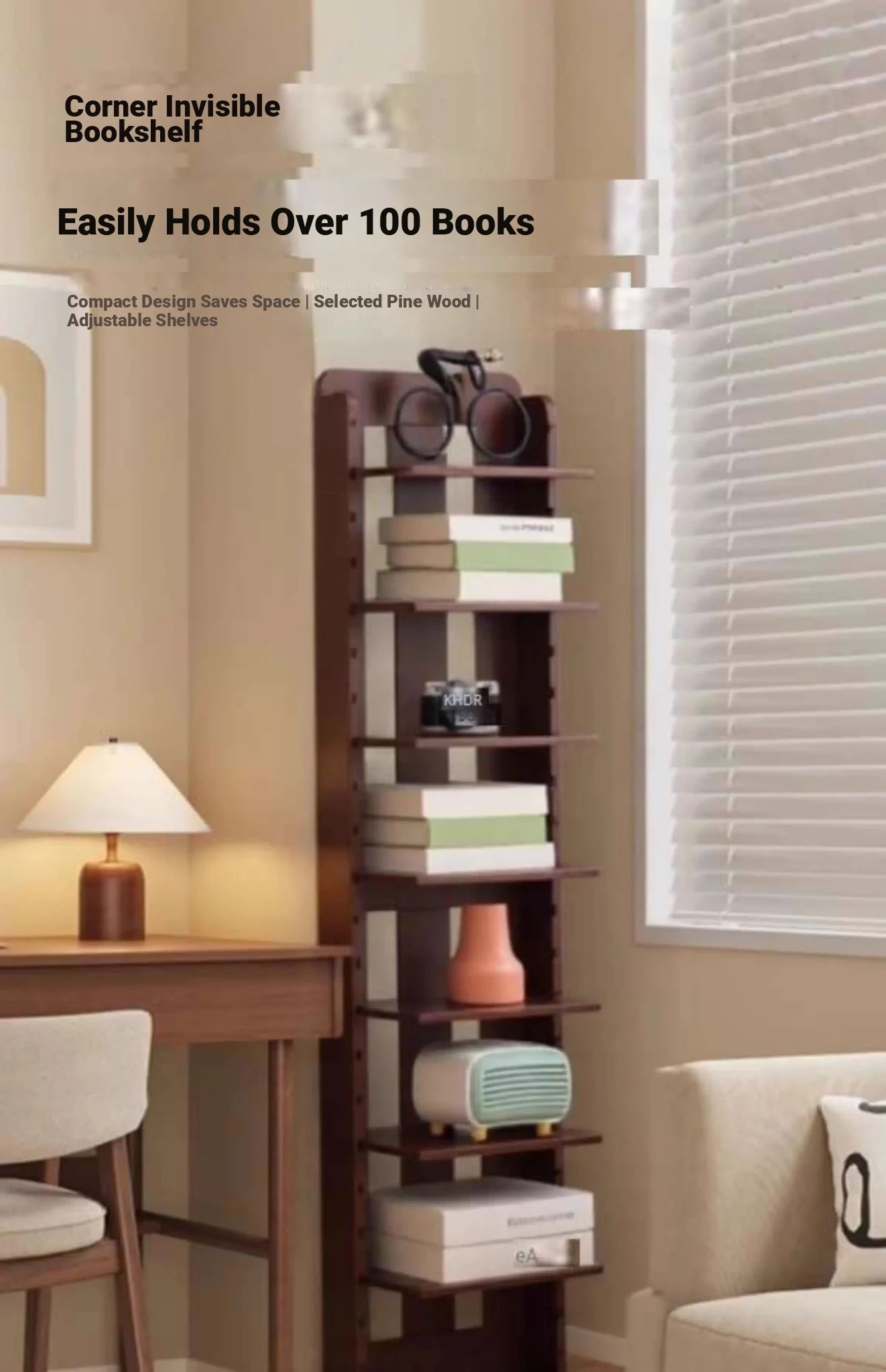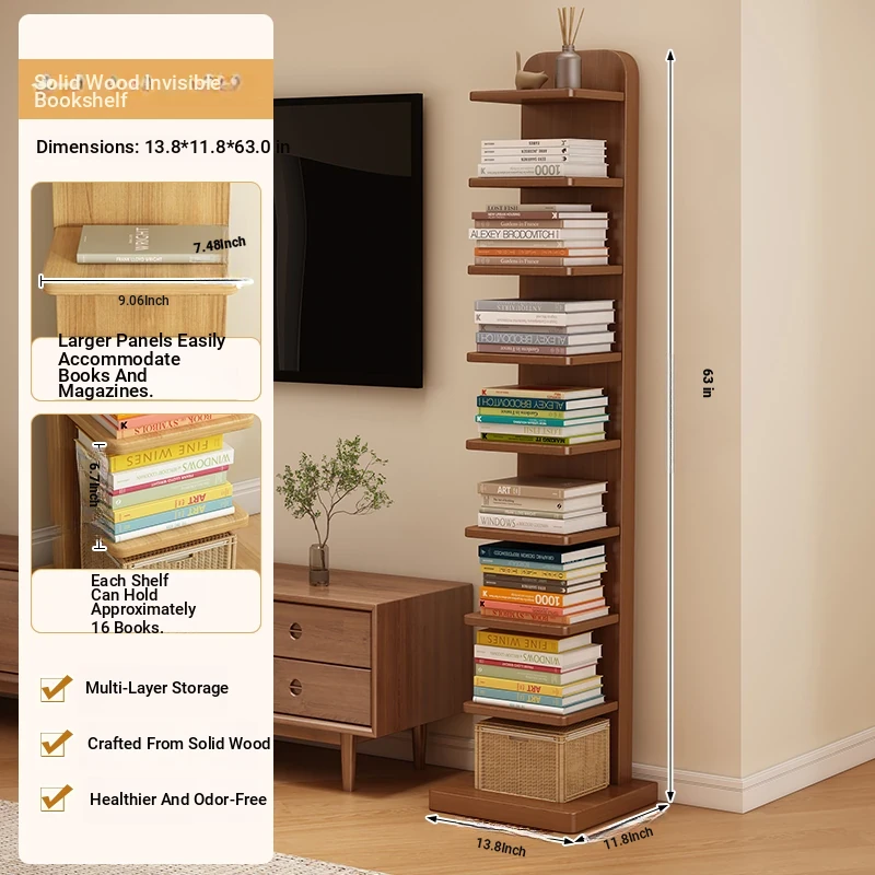 Corner Invisible Solid Wood Bookshelf - Wall-Mounted Narrow Cabinet for Students, Vertical Storage Organizer, Multi-Layer Display Bookcase - Perfect for Space-Saving and Stylish Home Decor!