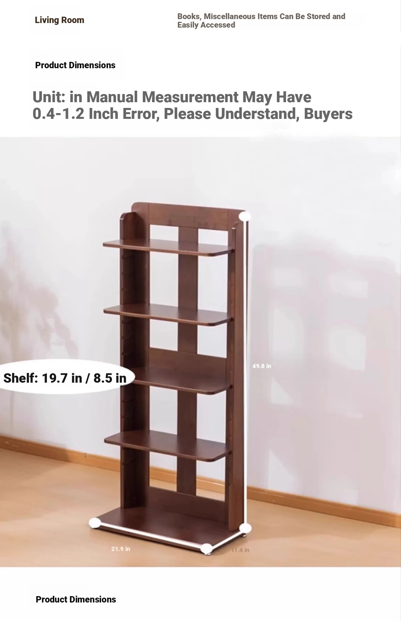 【 Thickened 0.47in Pine⭐Invisible bookshelf walnut color 13.78in*11.81in*34.25in