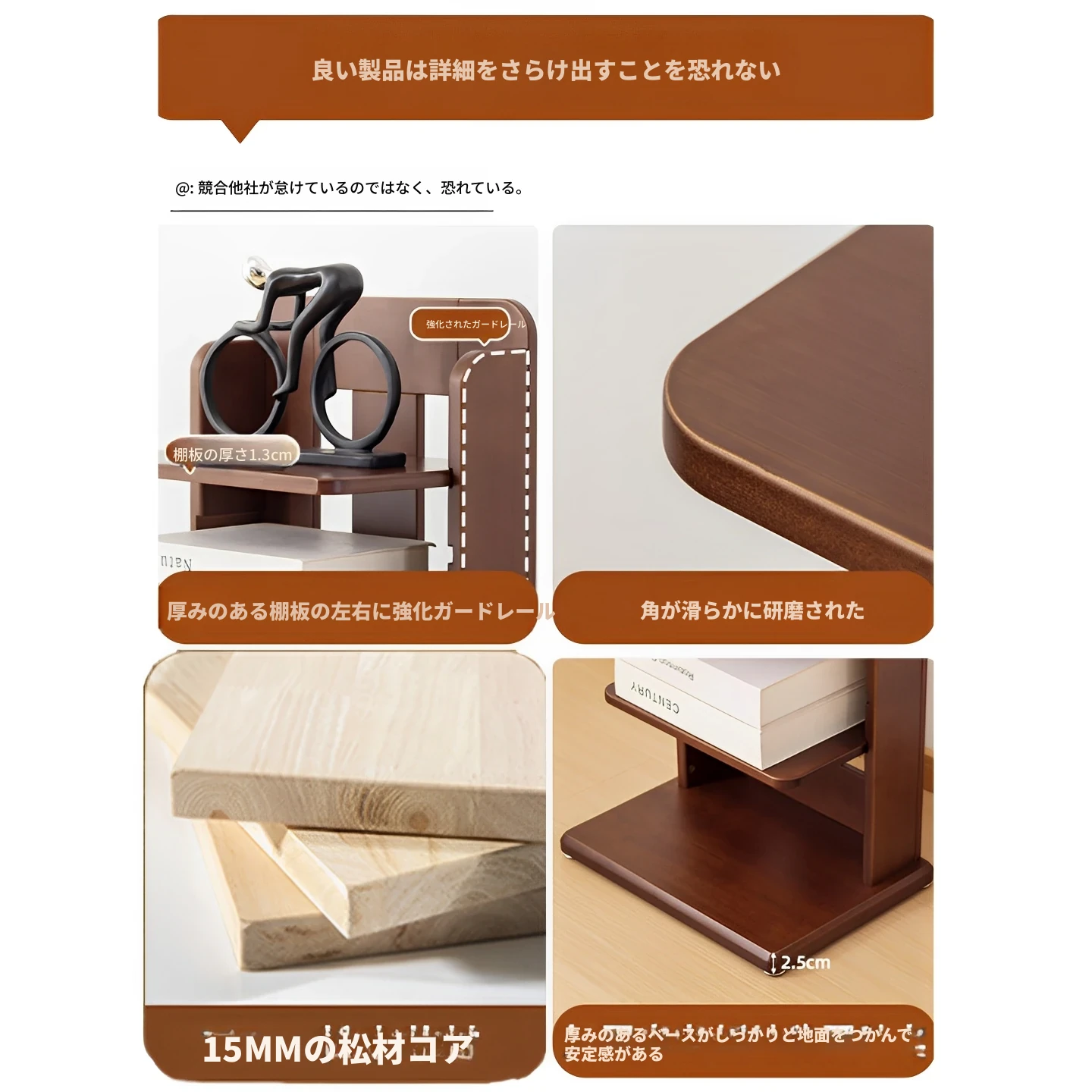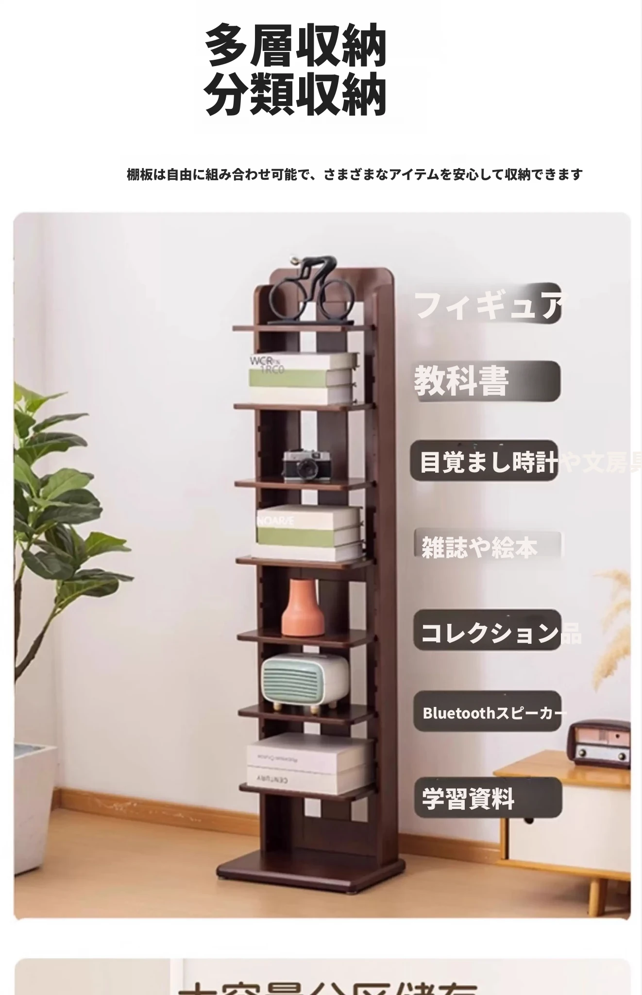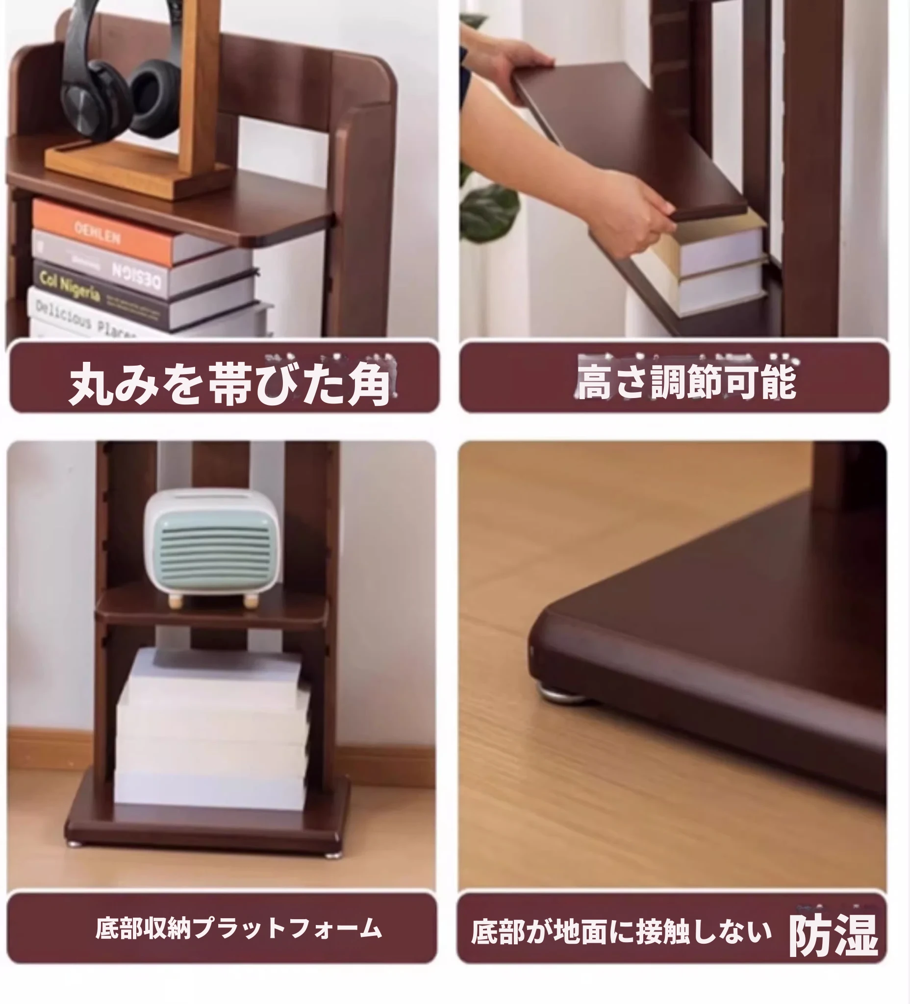 木製コーナー隠し収納棚 - 壁にぴったりフィットするスリムな学生用スタンド収納キャビネット!多層展示が可能な本棚で、お部屋をおしゃれに整理整頓!