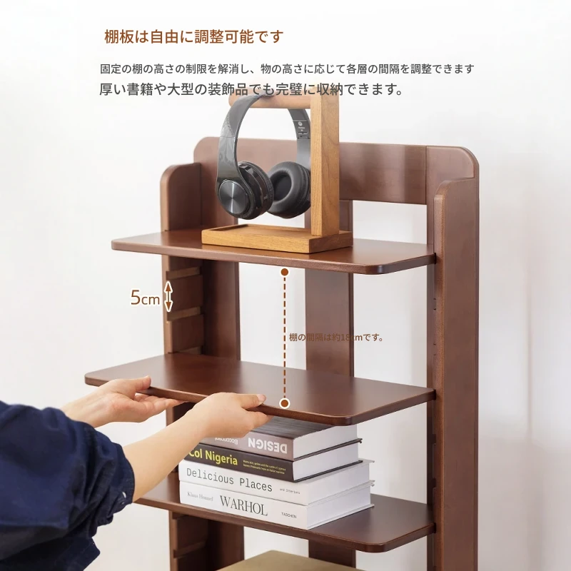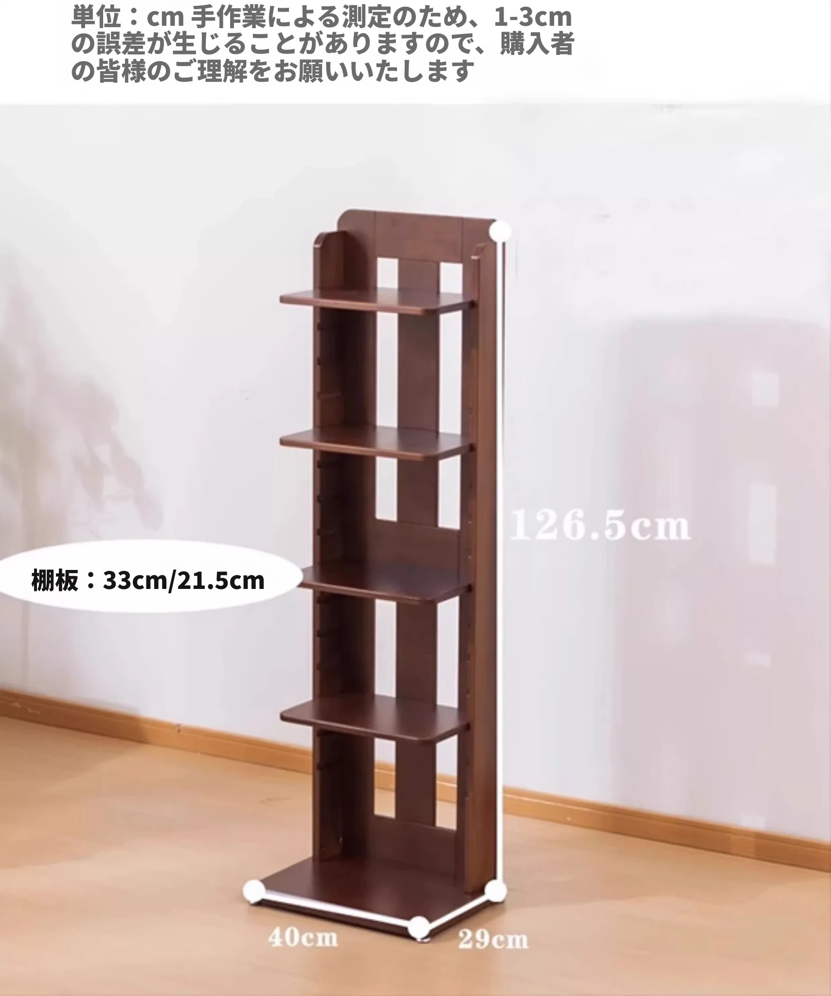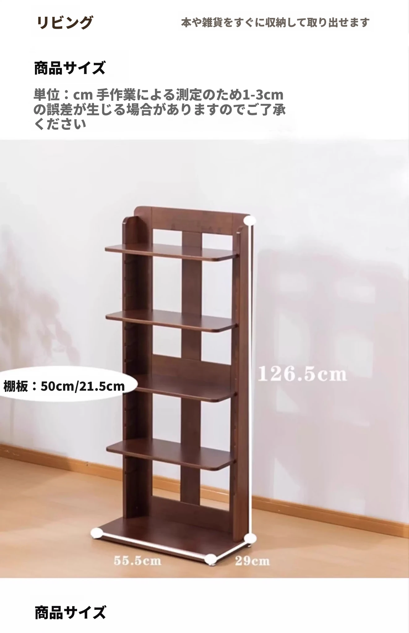 【厚さ15mmのパイン材⭐棚板調整可能】ウォールナット色55.5*29*126.5cm
