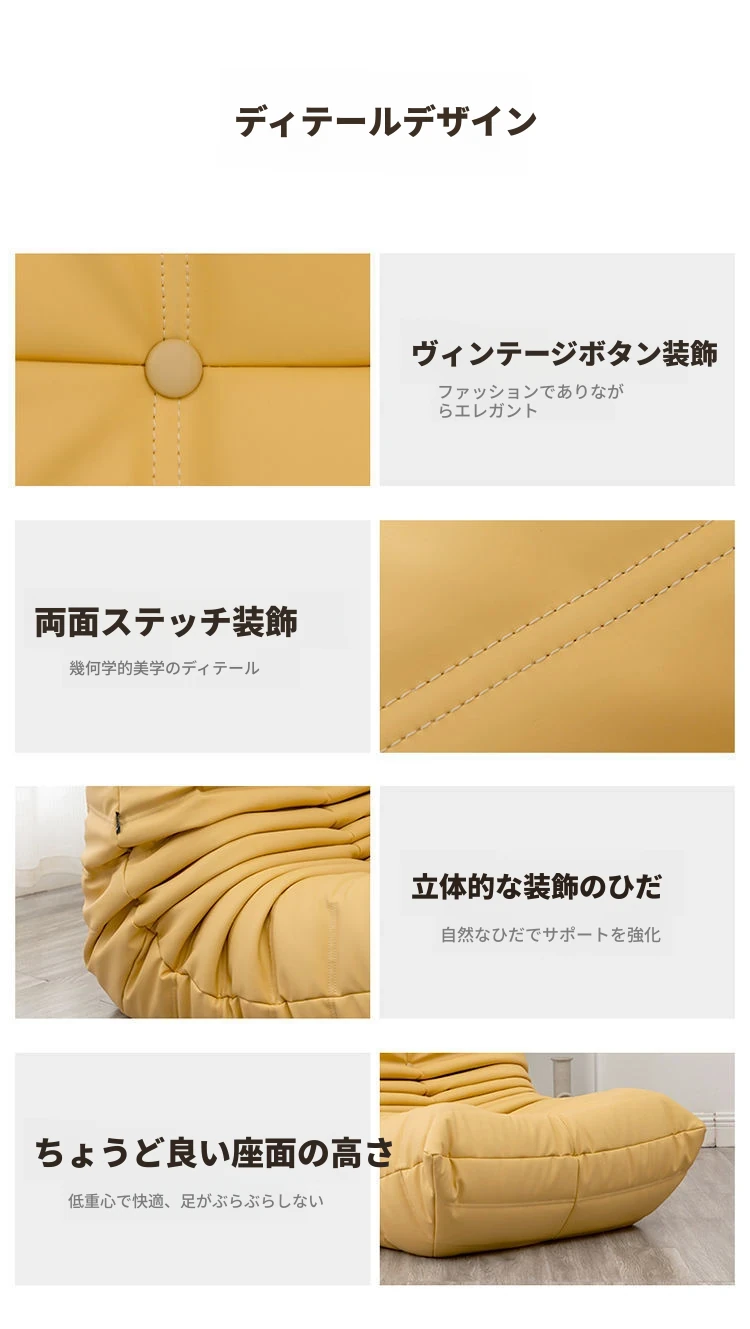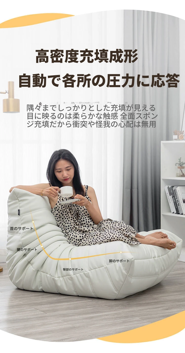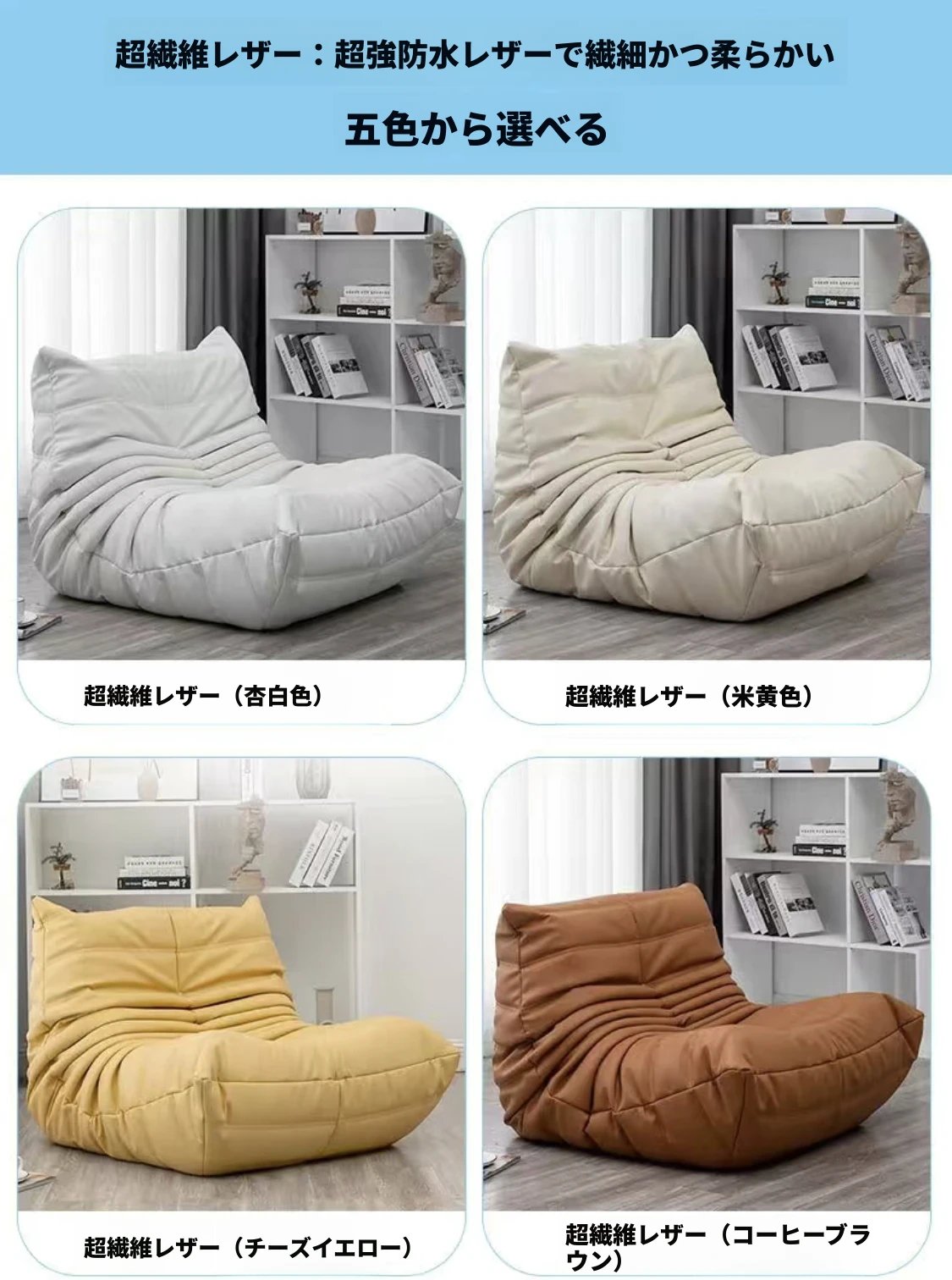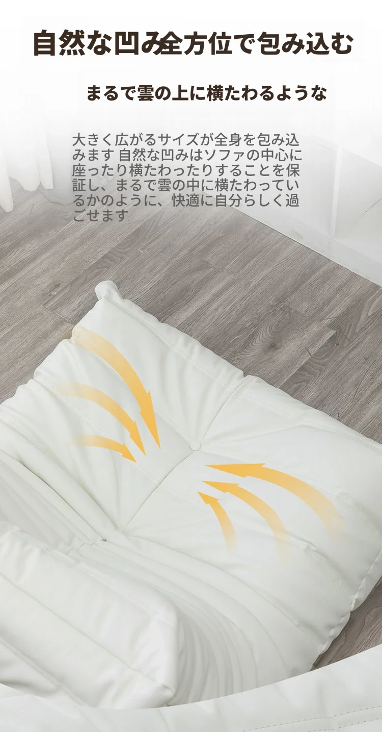 「ふわふわ毛虫型ラウンジソファ - ブラック・シングルパーソン用!スタイリッシュなリビング、寝室、バルコニーにぴったり!寝るもよし、くつろぐもよし。快適なレザー素材でタタミスタイルにも最適!」