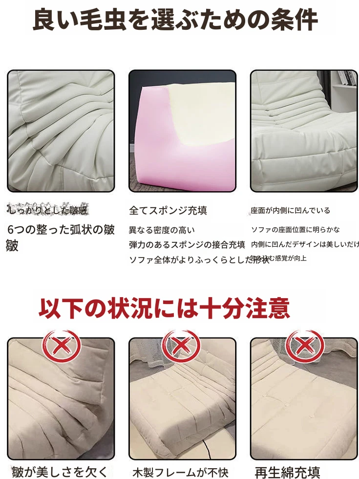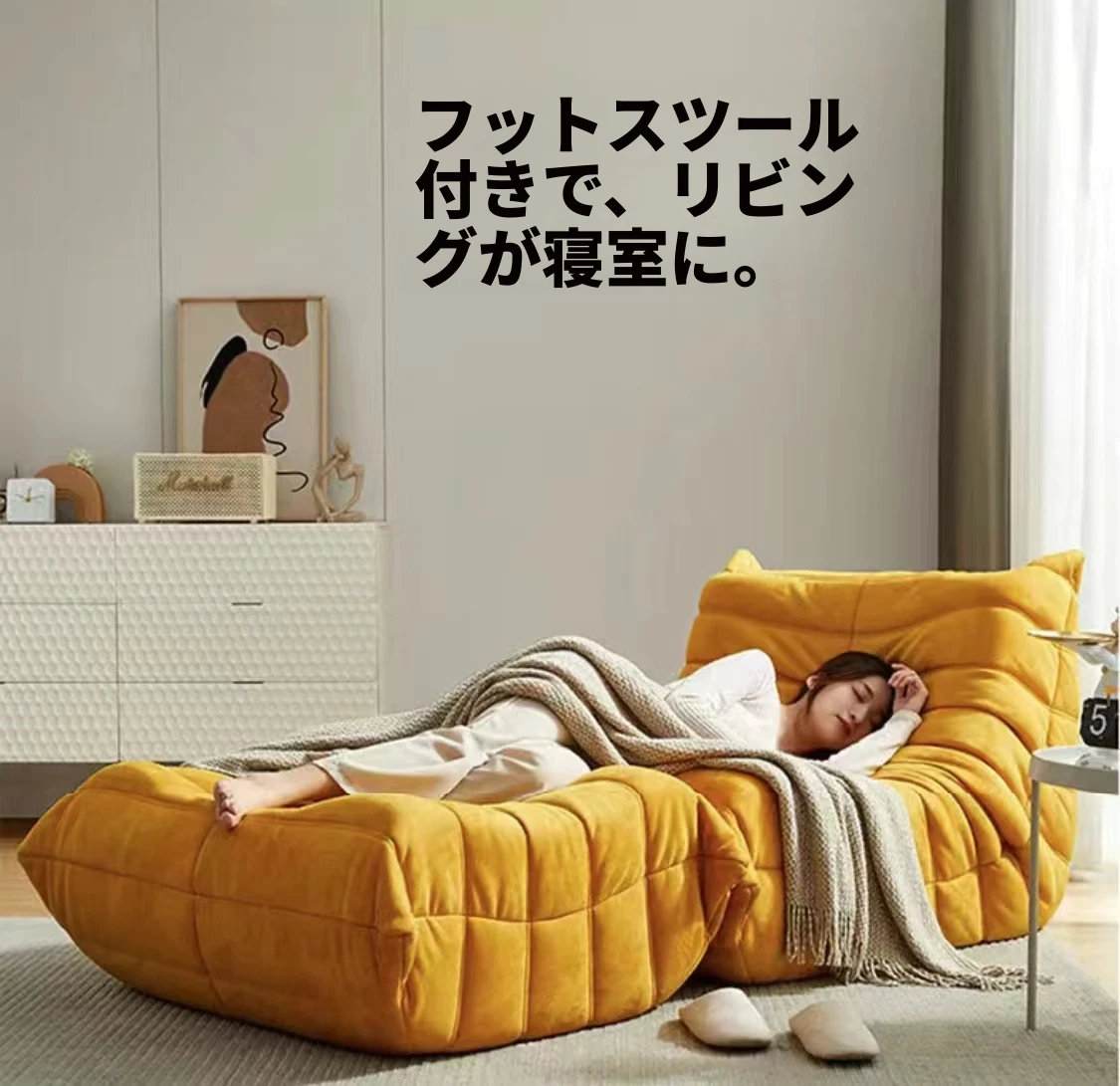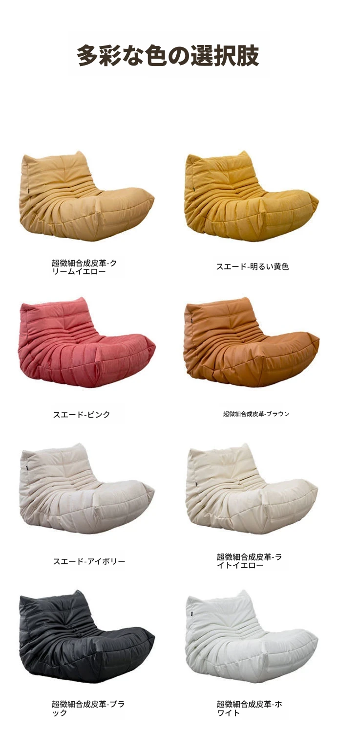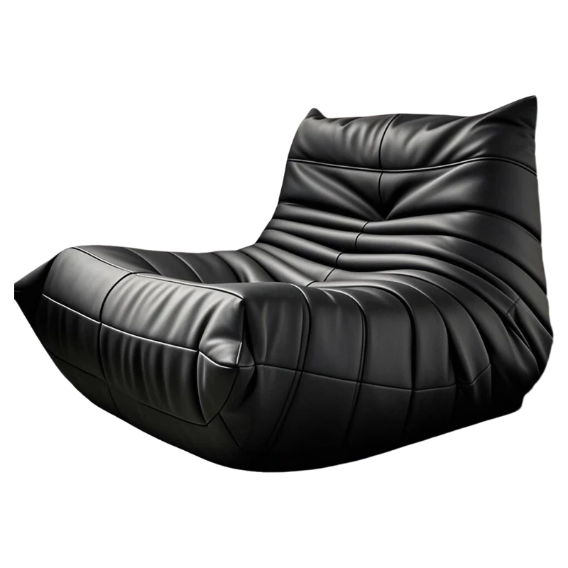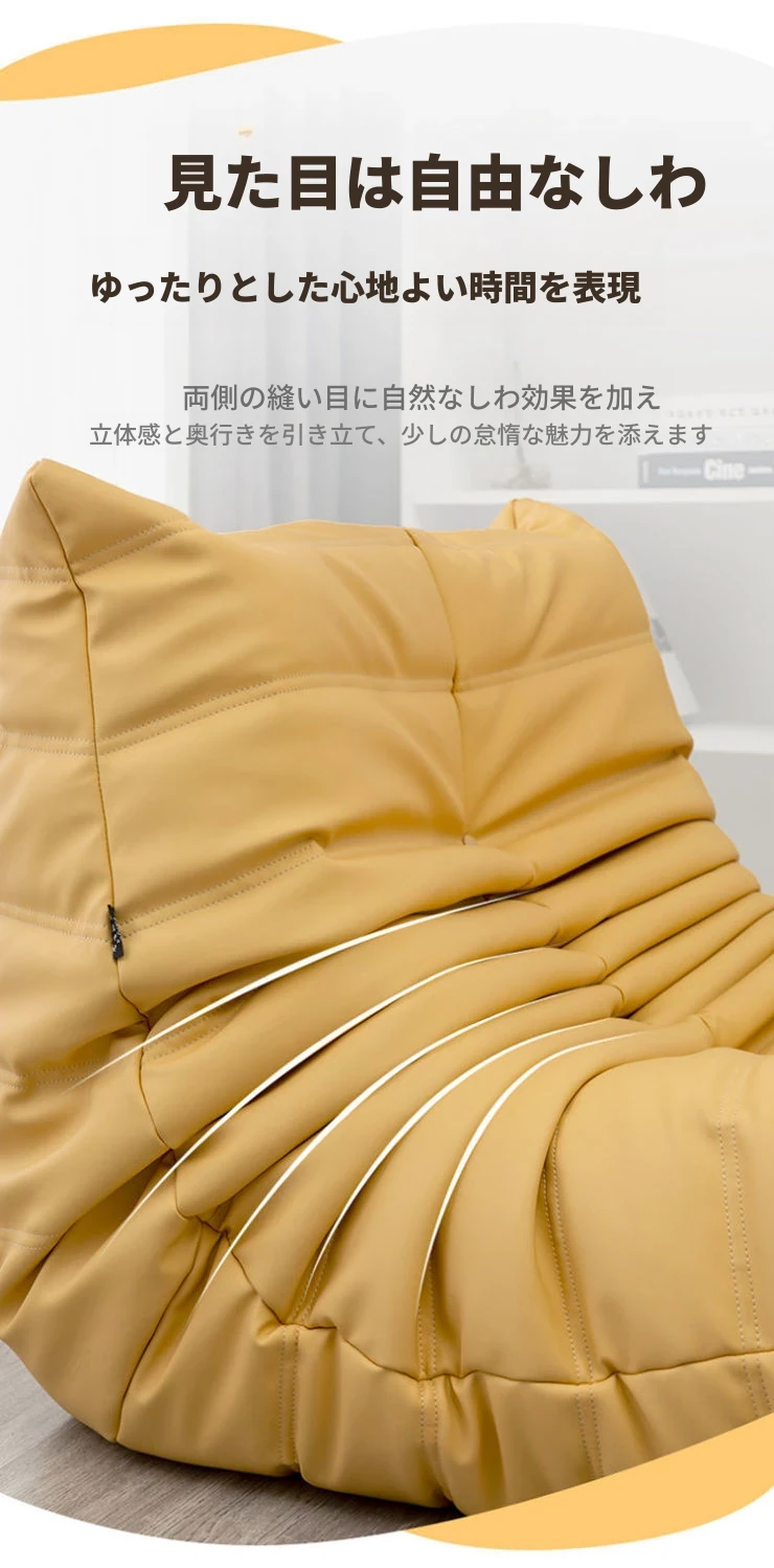 「ふわふわ毛虫型ラウンジソファ - ブラック・シングルパーソン用!スタイリッシュなリビング、寝室、バルコニーにぴったり!寝るもよし、くつろぐもよし。快適なレザー素材でタタミスタイルにも最適!」