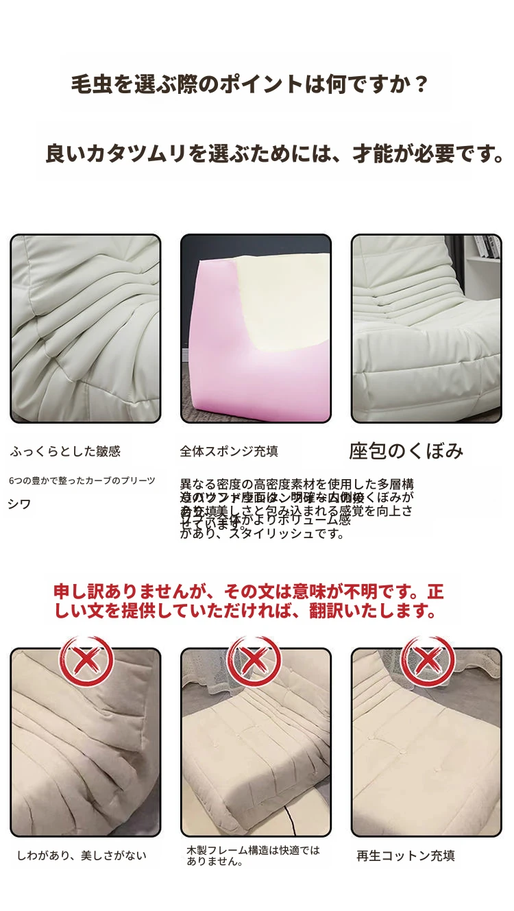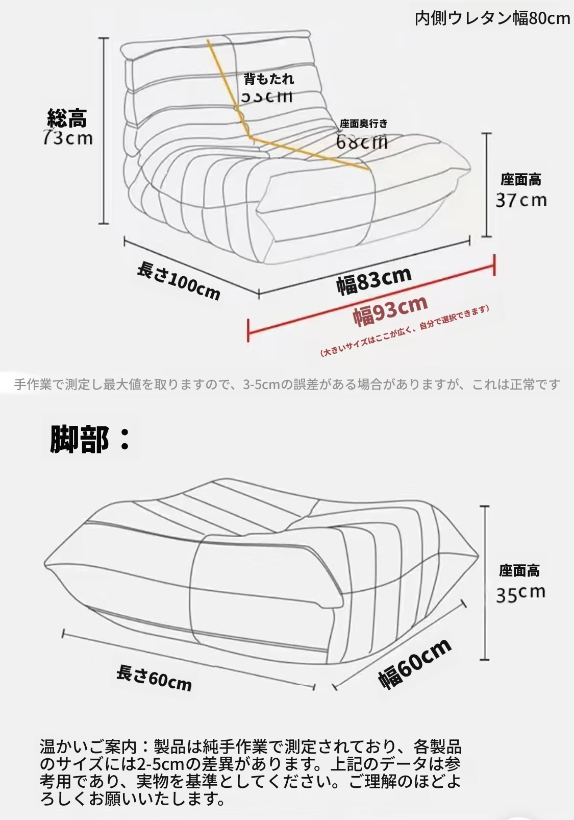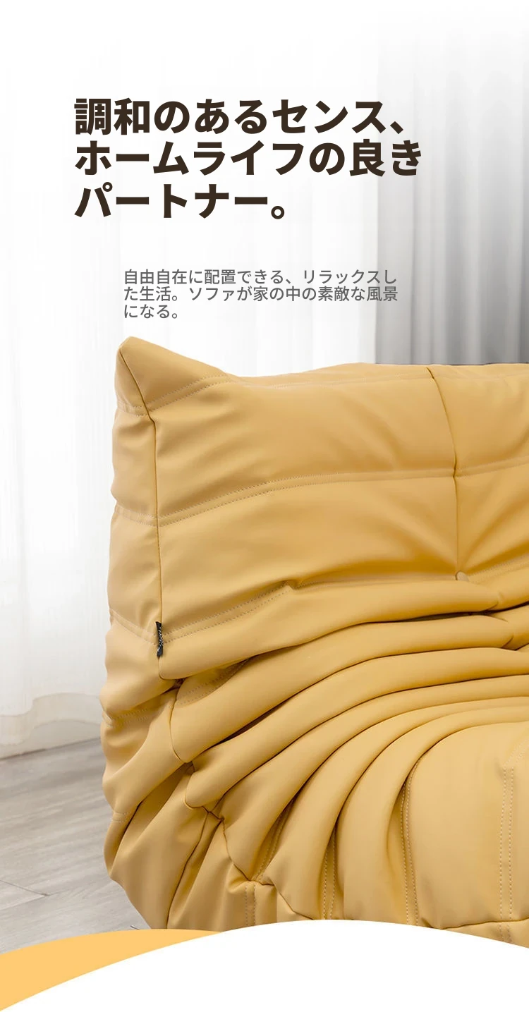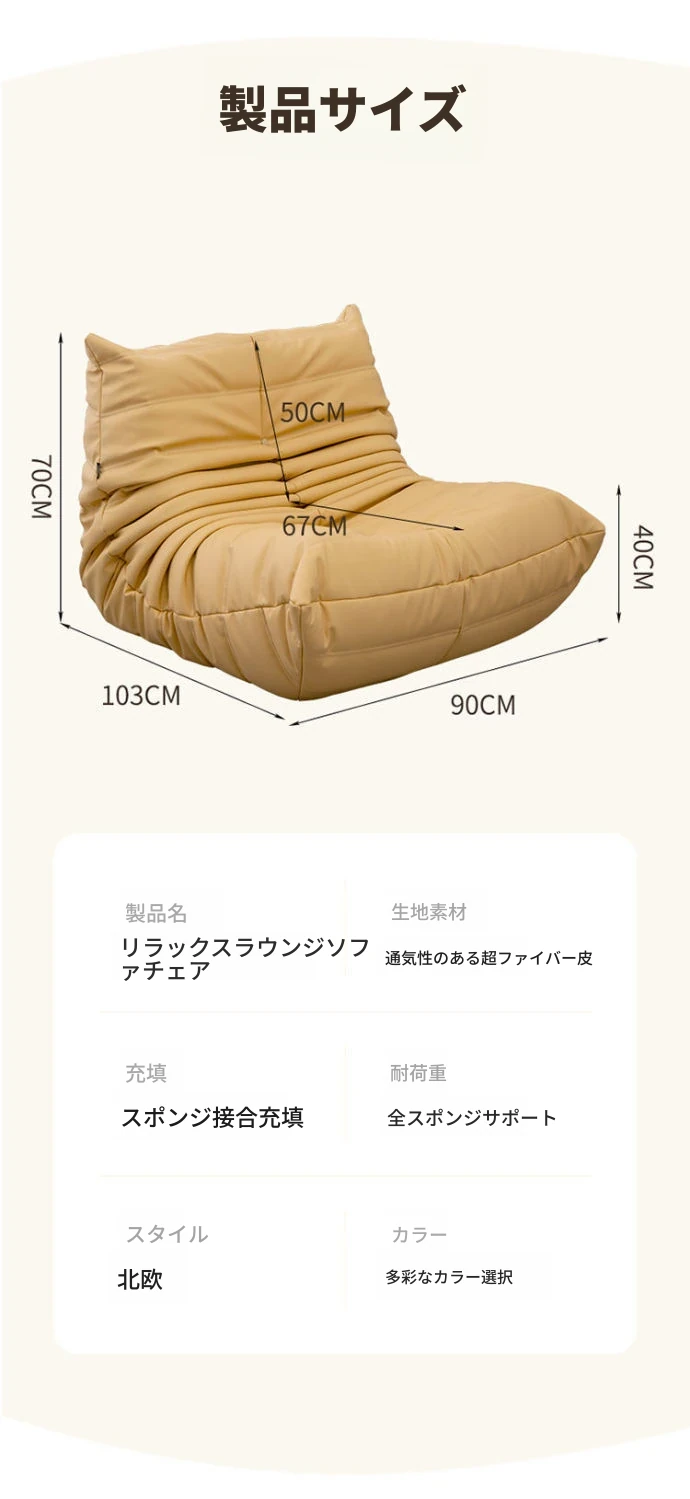 「ふわふわ毛虫型ラウンジソファ - ブラック・シングルパーソン用!スタイリッシュなリビング、寝室、バルコニーにぴったり!寝るもよし、くつろぐもよし。快適なレザー素材でタタミスタイルにも最適!」