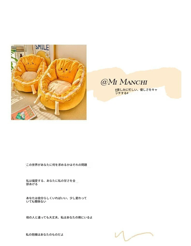 リラックス小型ソファベッド用タタミクッション|人間と犬のためのカートゥーンスタイル|おしゃれな女性向け窓際バックレスト|快適な寝室・リビングにぴったり!
