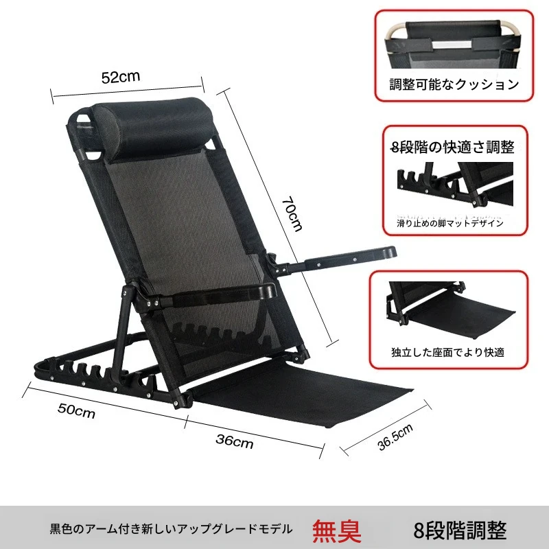 【アップグレードソフトパッド】大サイズブラック+ソフトパッド 【8段調整+枕付き】
