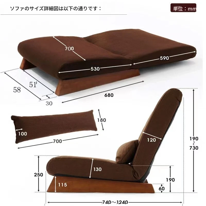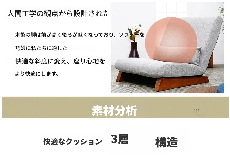 おしゃれで快適!フロアソファ 一人用 折りたたみ式 リラックスチェア バルコニーや寝室に最適な和風畳スタイル くつろぎながら寝ることもできる!