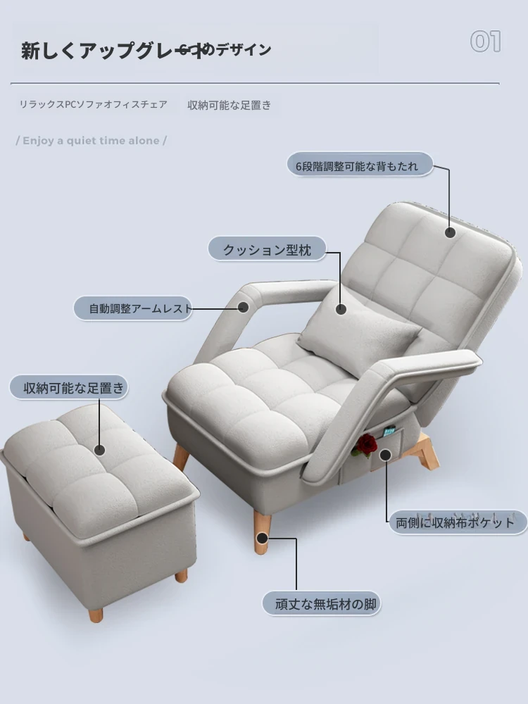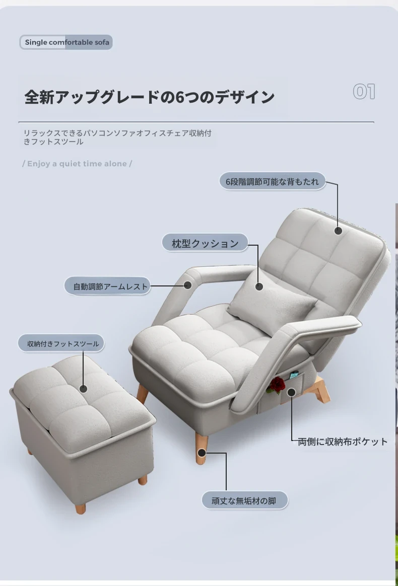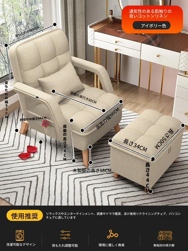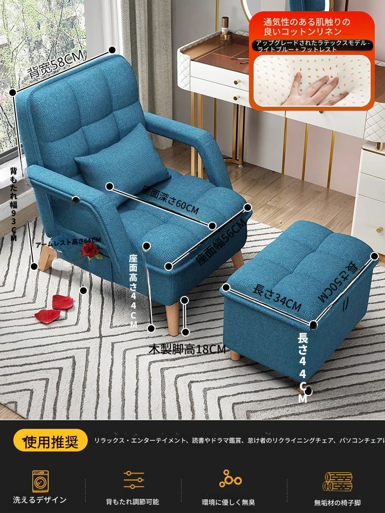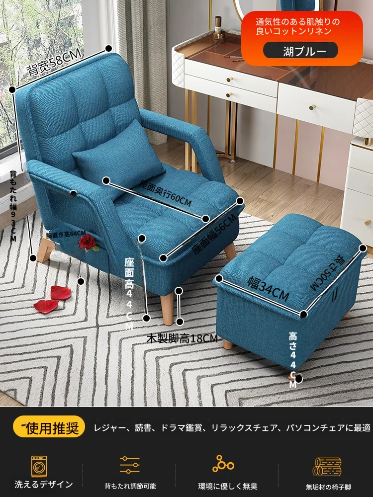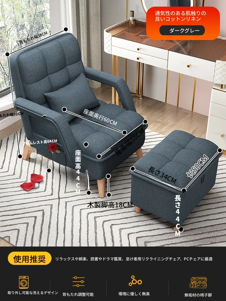 リラックスチェア 一人用ソファ 折りたたみ式で寝転びながら快適にお昼寝!畳や寝室、リビング、バルコニーに最適なソファチェア。心地よいひとときをお届けします。