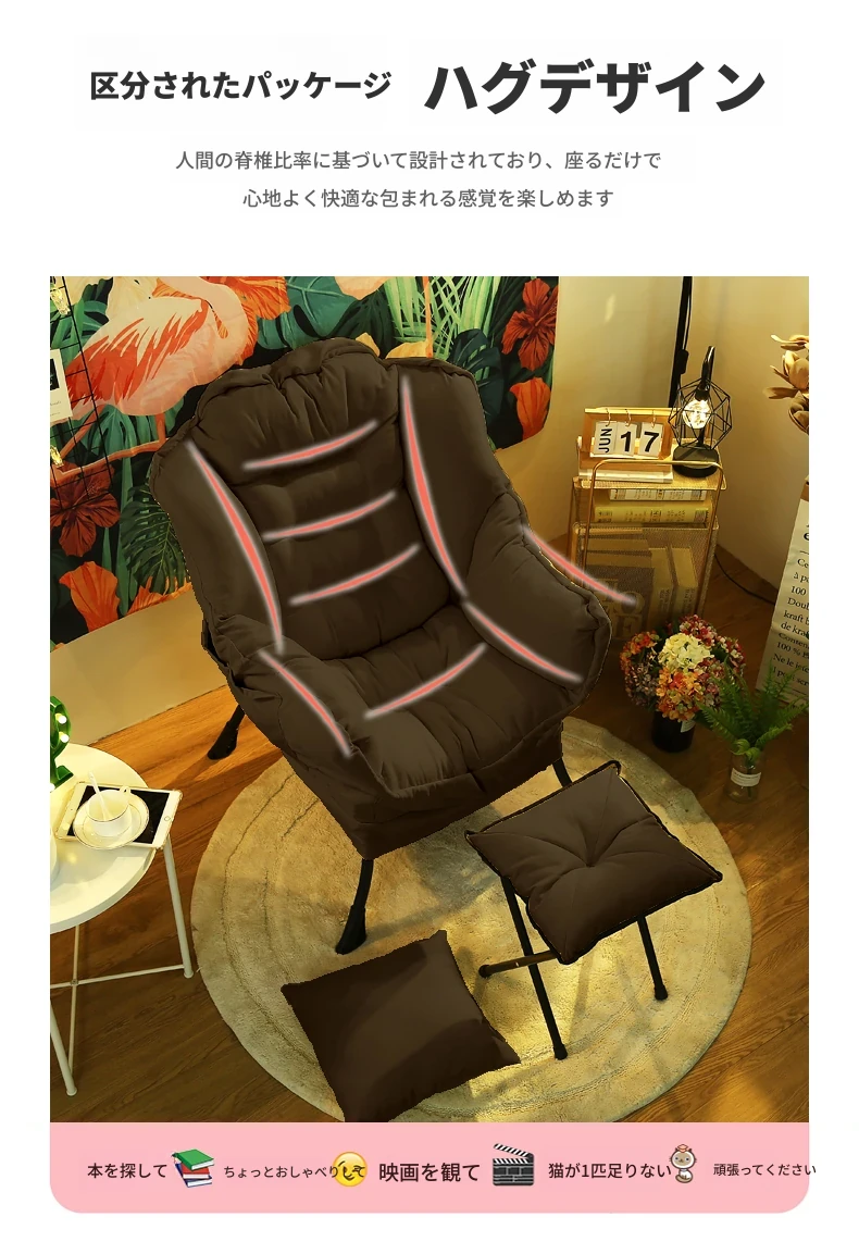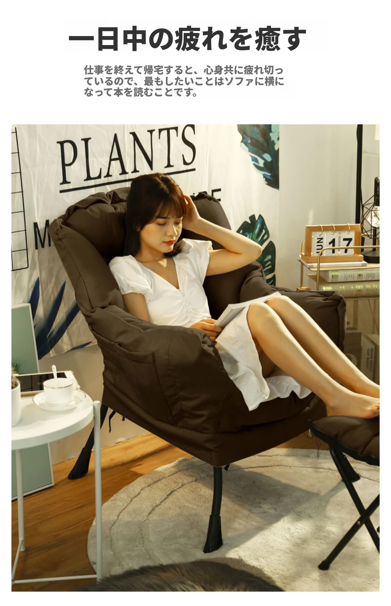 リラックスできる一人用ソファ|学生寮や寝室に最適な快適なパソコンチェア|背もたれ付きで心地よいひとときを提供する「怠け者ソファ」