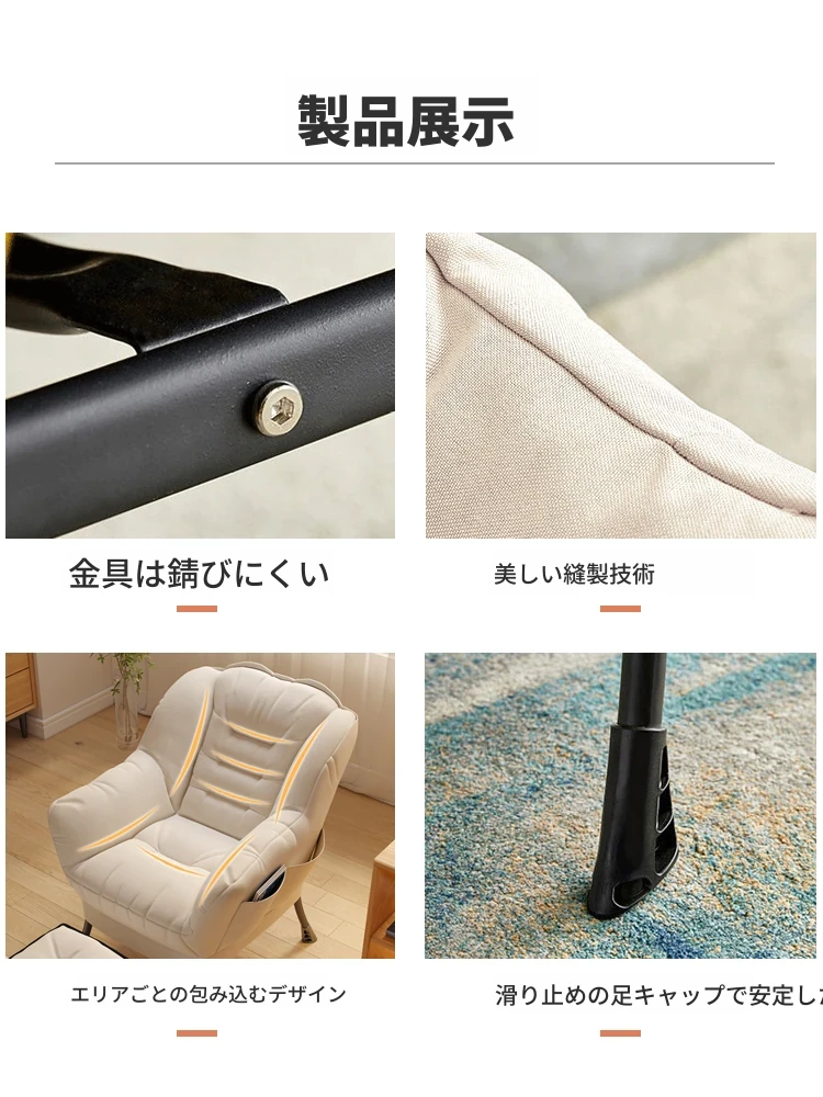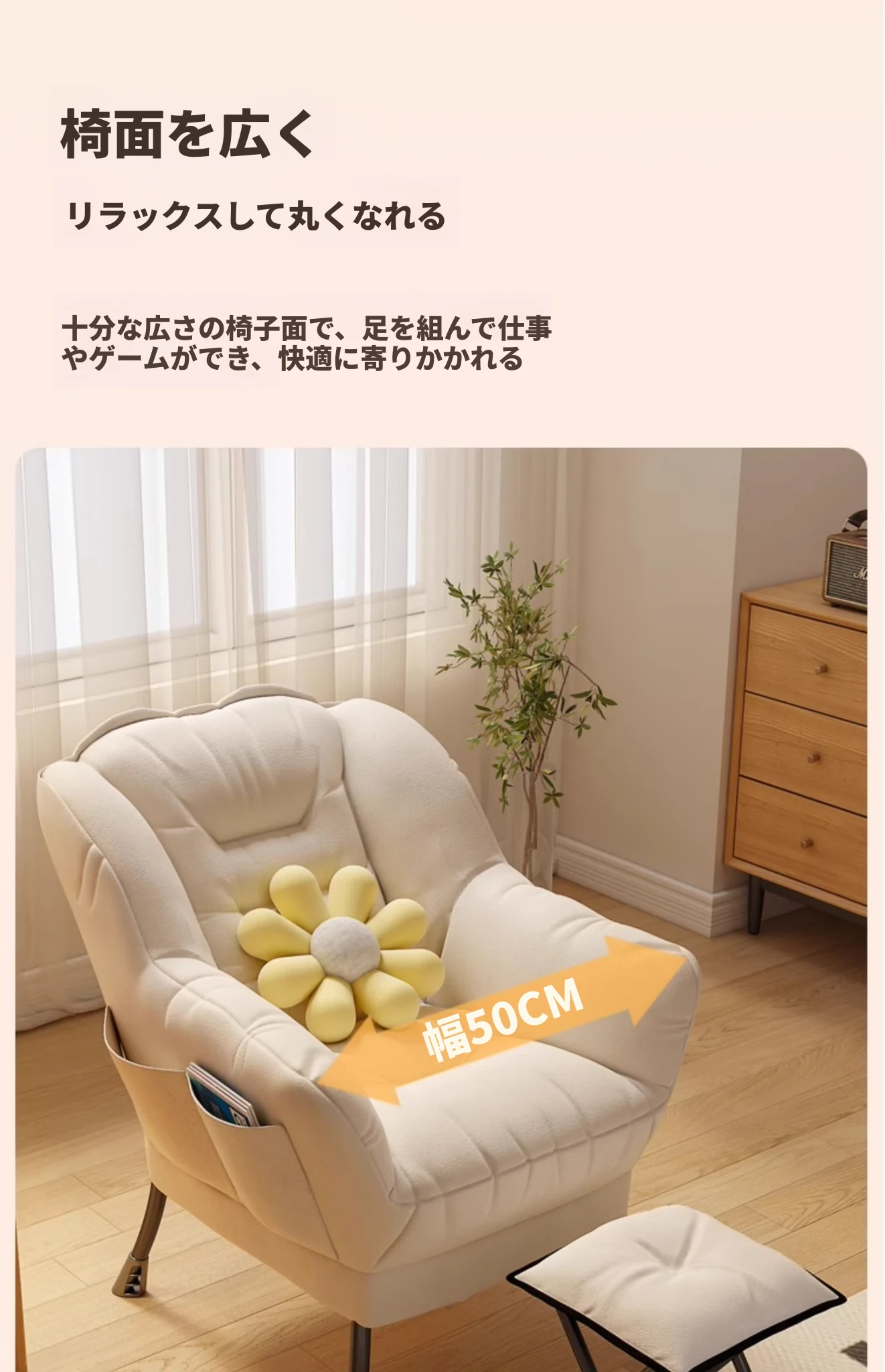 楽々リクライニングソファ 一人用コンパクトチェア 学生寮やパソコン作業に最適!快適なひとときを提供するリラックスチェア。寝室やリビングで心地よいくつろぎをお楽しみください。