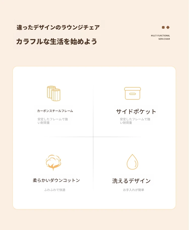 アップグレード厚手モデル アイボリー【通気性のあるコットンリネン】+足置き☆50cm座幅