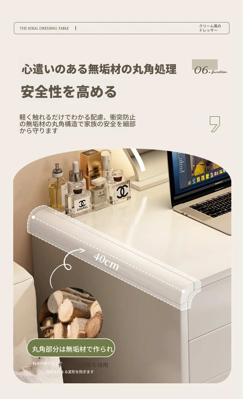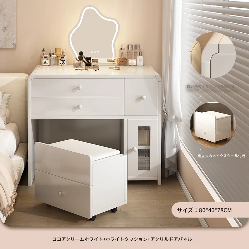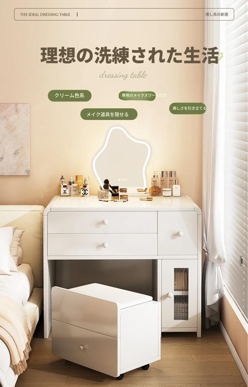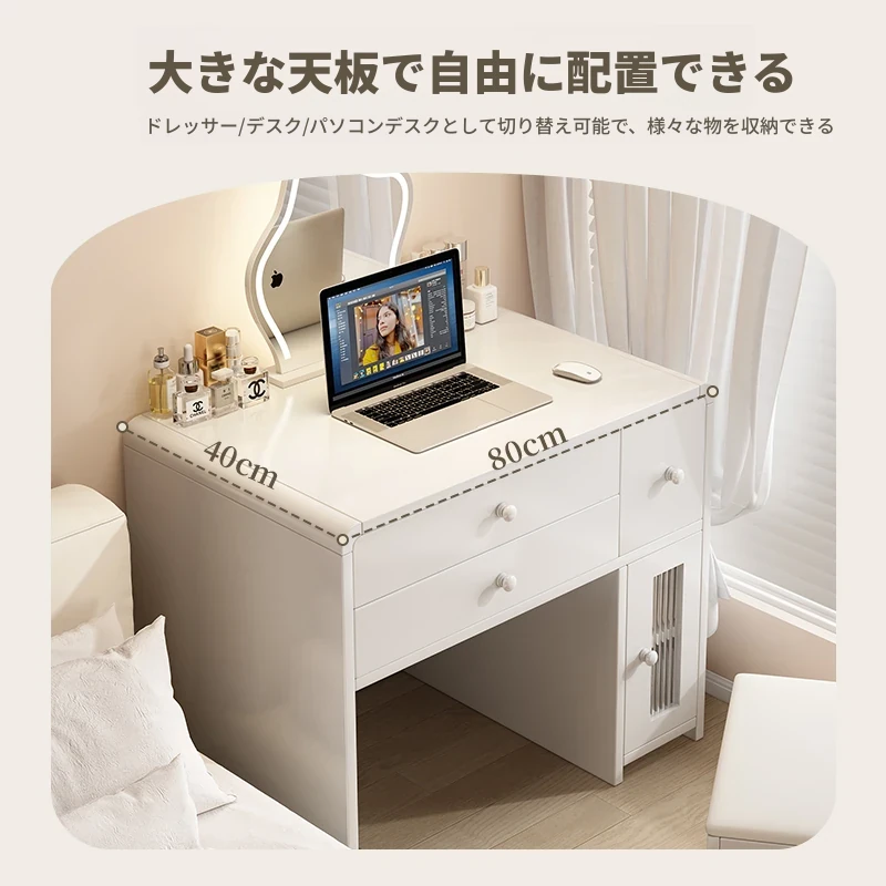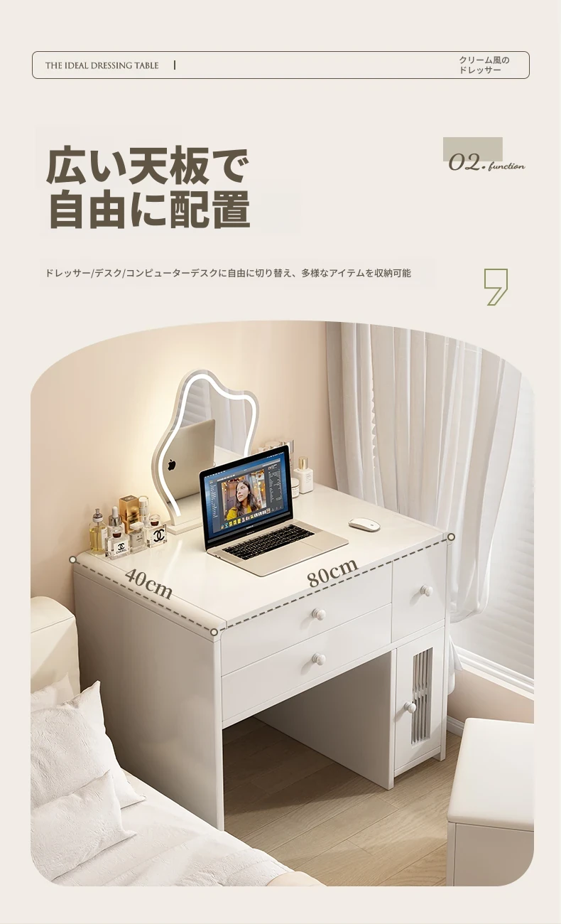 クリーム風のメイクアップテーブル - 小さなコーナーにぴったりな簡易化粧台!2025年新作、寝室やミニマリストの家に最適なコンパクトデスク。おしゃれで機能的、あなたのメイクをもっと楽しく!
