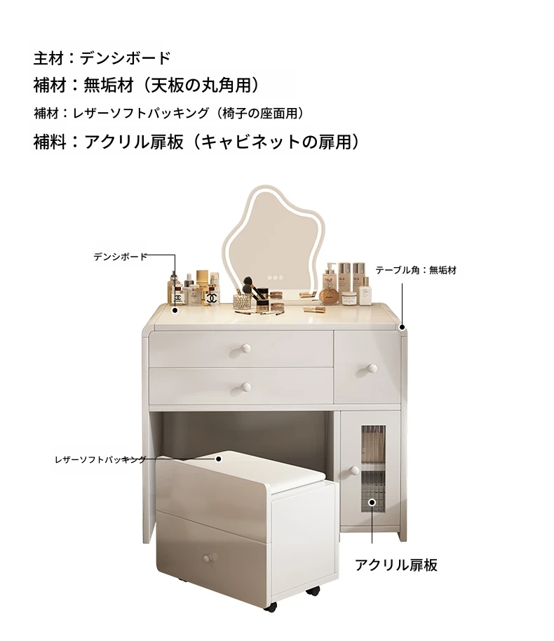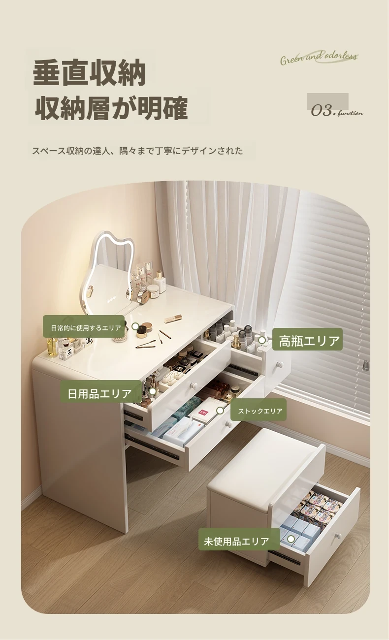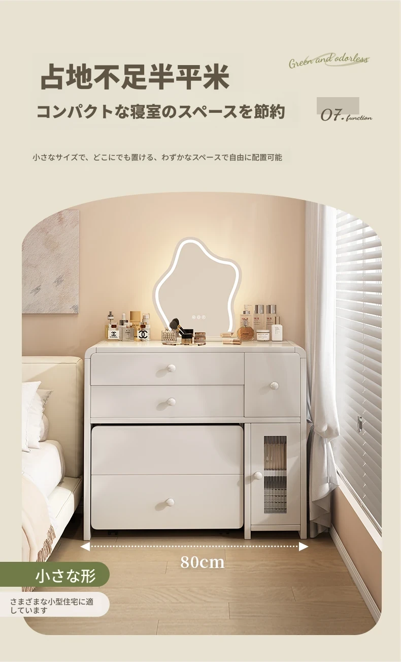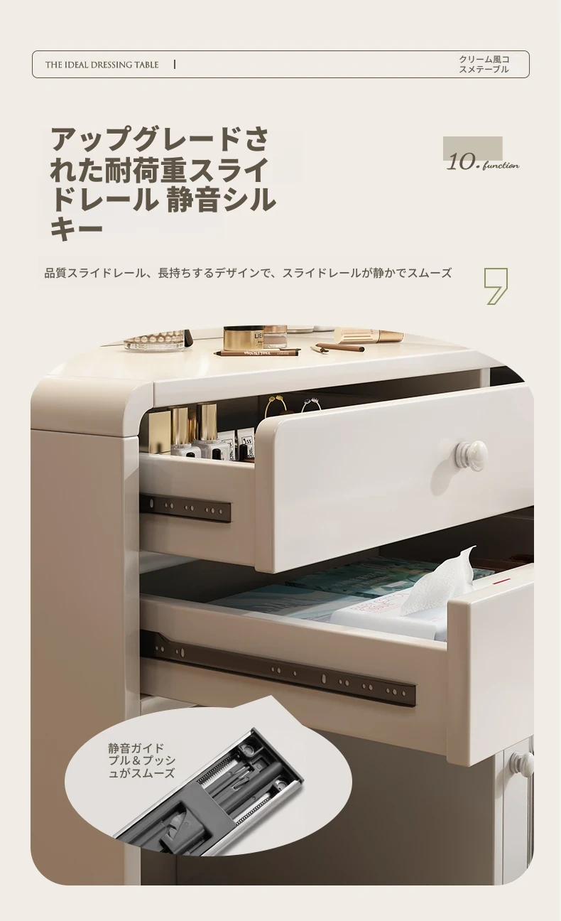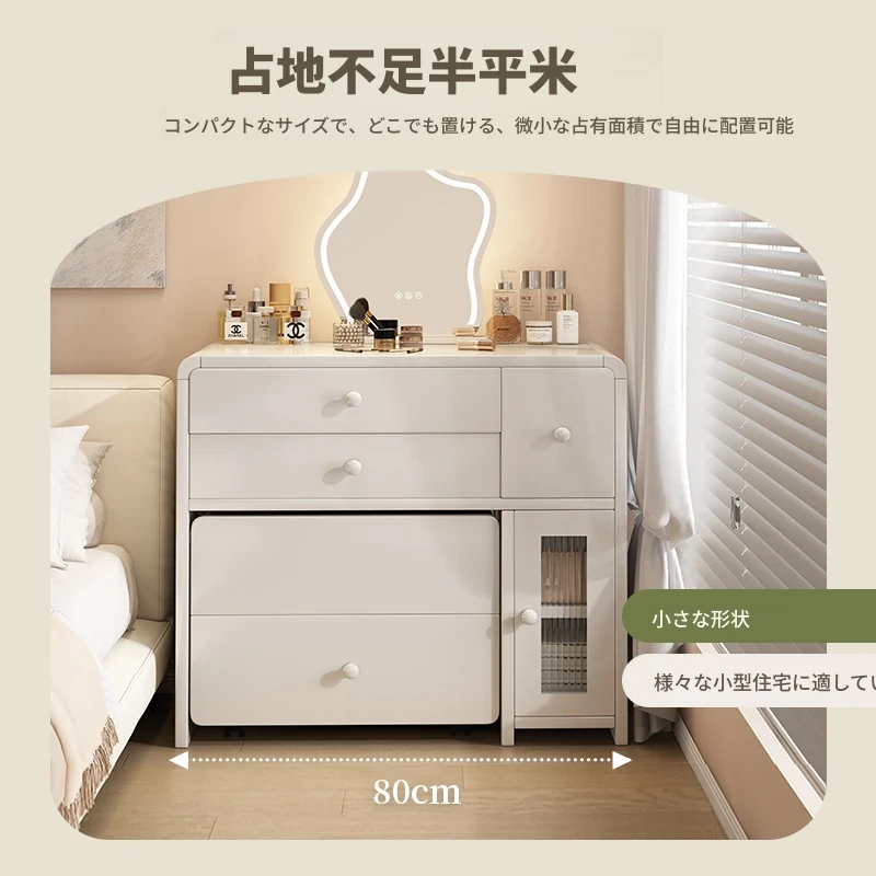 クリーム風のメイクアップテーブル - 小さなコーナーにぴったりな簡易化粧台!2025年新作、寝室やミニマリストの家に最適なコンパクトデスク。おしゃれで機能的、あなたのメイクをもっと楽しく!