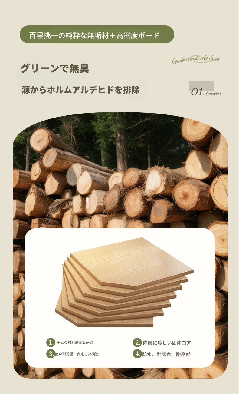 主画像と同じ⭐【消臭加厚安心板+無垢材の丸角】サイドキャビネット80(鏡なし)