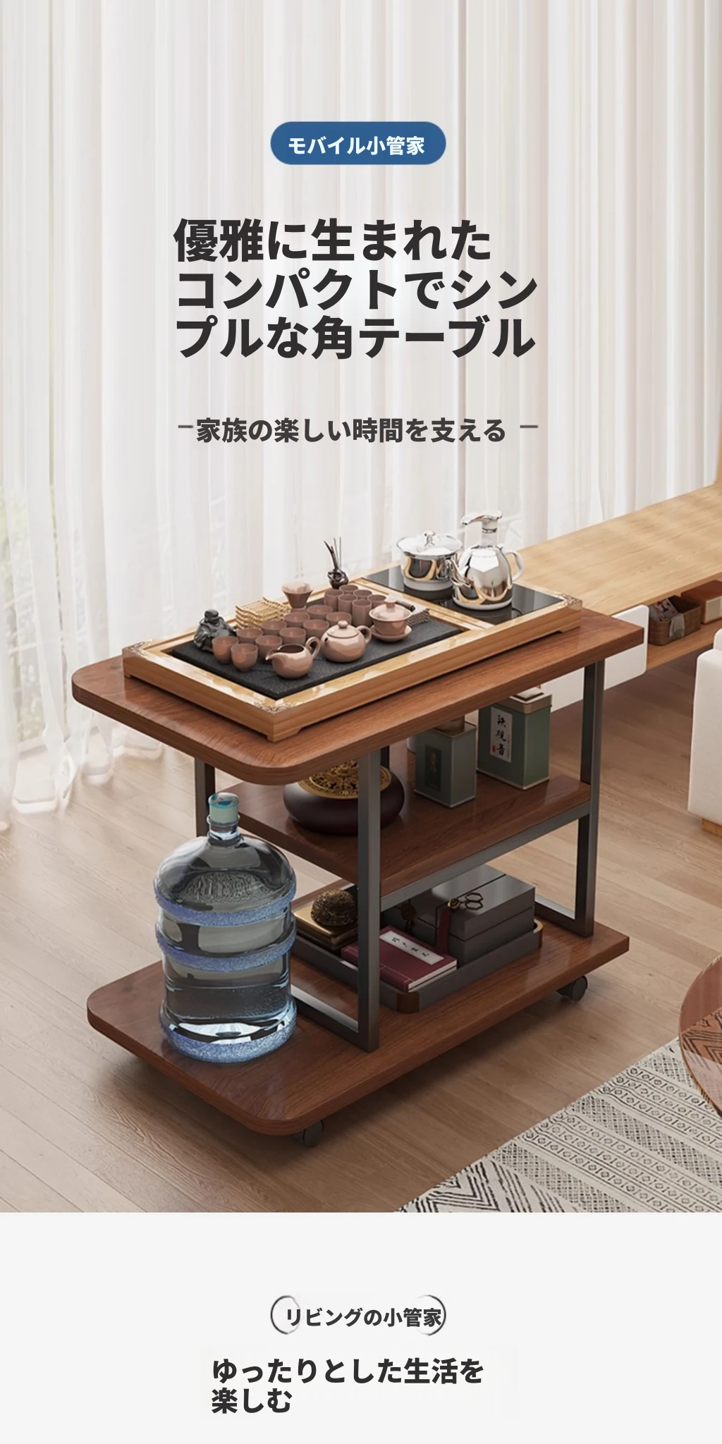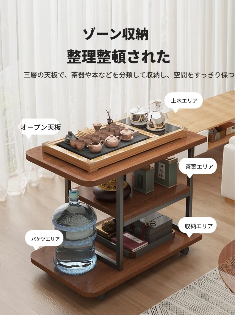 おしゃれなサイドテーブル!リビングにピッタリな移動可能な茶水キャビネット。クリエイティブなデザインで、コンパクトなのに収納力抜群。お茶を楽しむための小さなテーブルとしても最適!