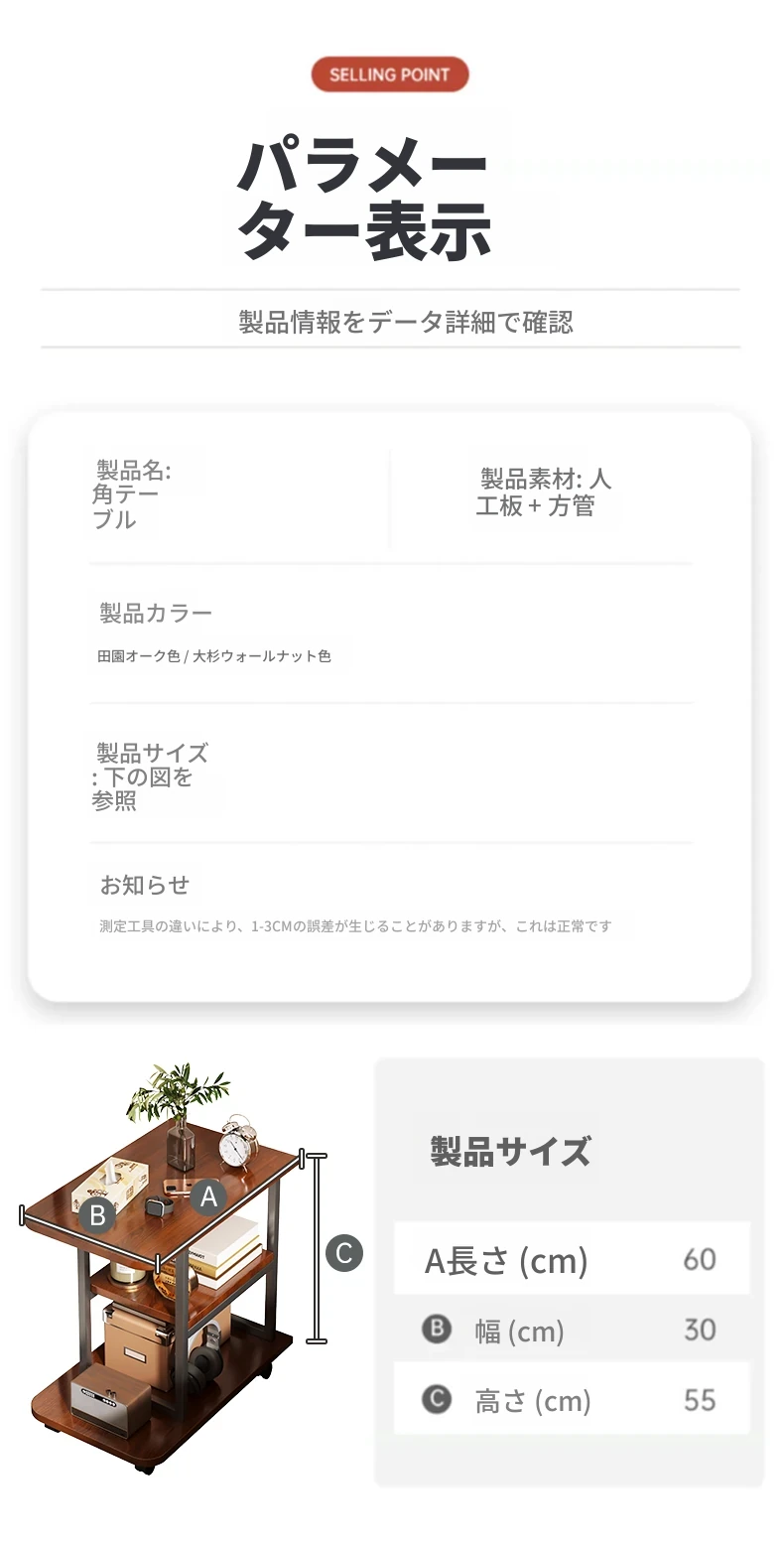 【加厚方管+キャスター】田園オーク色+黒フレーム