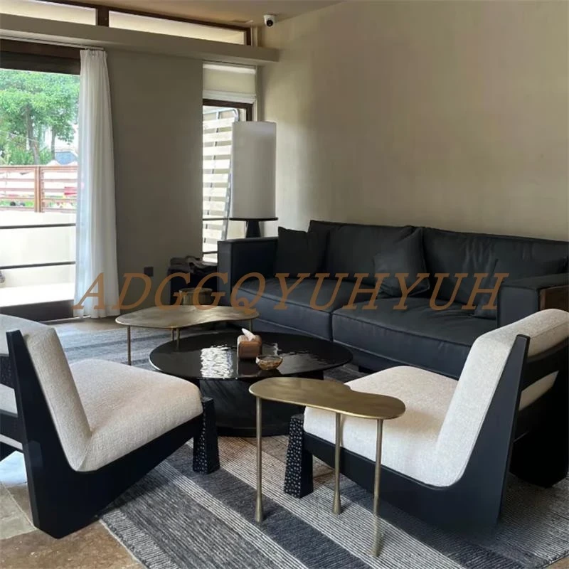中古風のおしゃれな実木製一人掛けソファ椅子 - デザイナーの創造力が光る、リラックスできるラウンジチェア。モデルルームや接客スペースにぴったりなアイテムです。