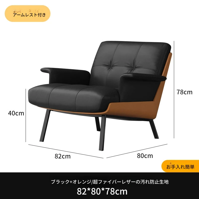 ソファチェア【ブラック+オレンジ】【アーム付き】 汚れ防止生地