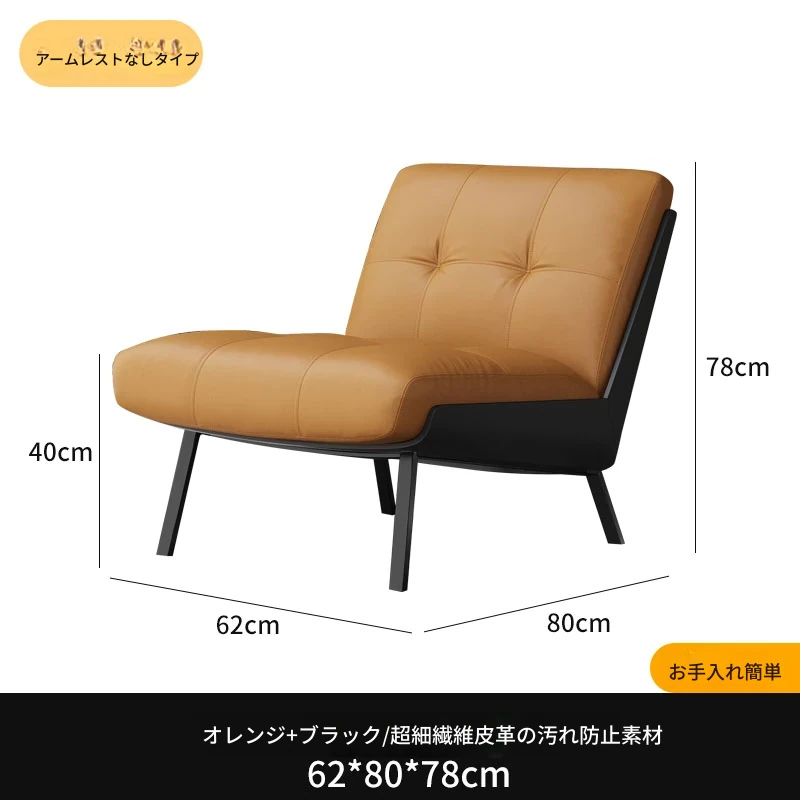 ソファチェア【オレンジ+ブラック】【アームなし】 汚れ防止生地