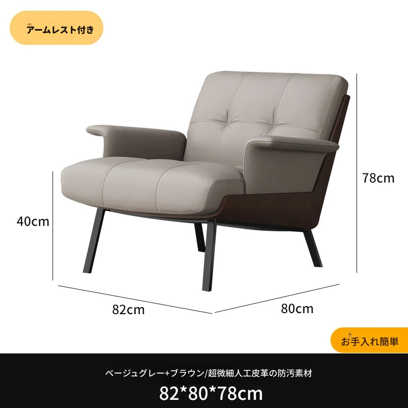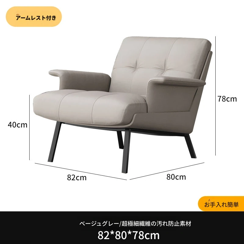 ソファチェア【ミディアムグレー】【アーム付き】 汚れ防止生地