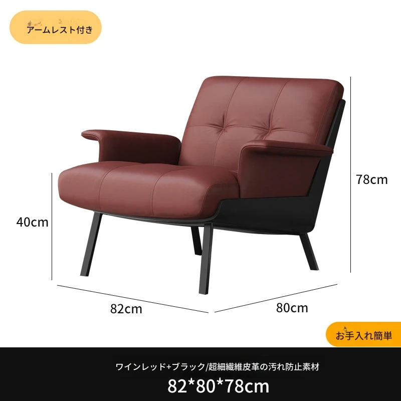 ソファチェア【ワインレッド+ブラック】【アーム付き】 汚れ防止生地