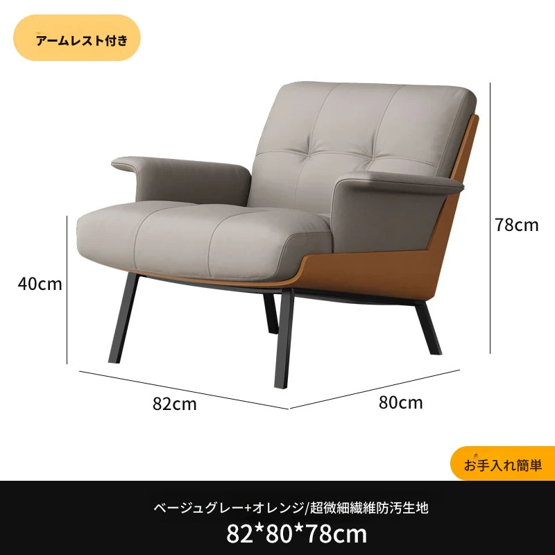 ソファチェア【ミディアムグレー+オレンジ】【アーム付き】 汚れ防止生地