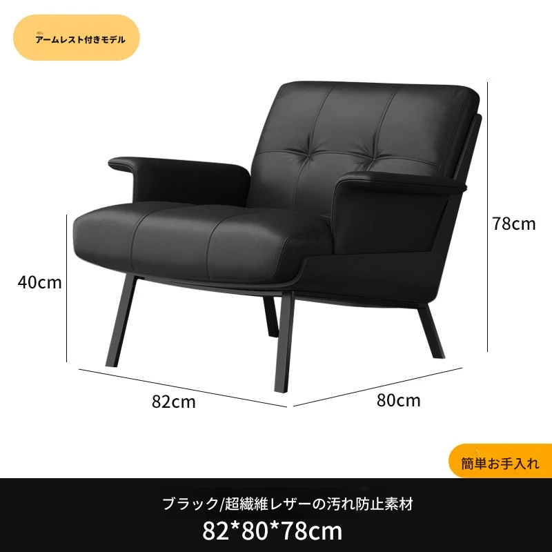 ソファチェア【ブラック】【アーム付き】 汚れ防止生地