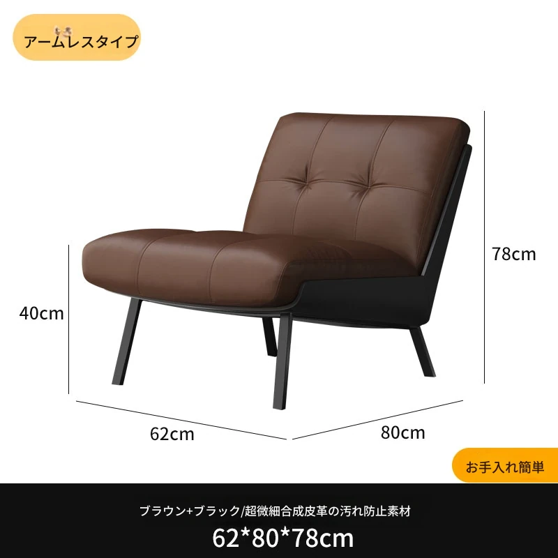 ソファチェア【ブラウン+ブラック】【アームなし】 汚れ防止生地
