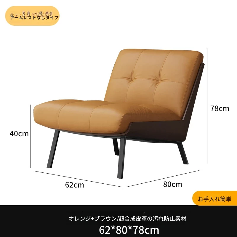 ソファチェア【オレンジ+ブラウン】【アームなし】 汚れ防止生地