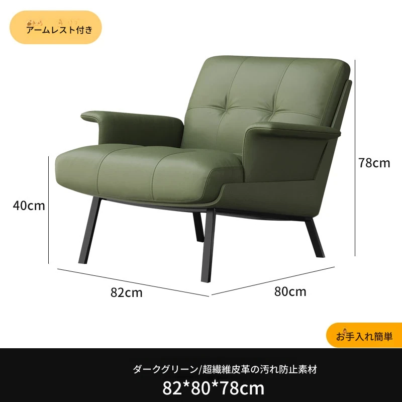 ソファチェア【ダークグリーン】【アーム付き】 汚れ防止生地