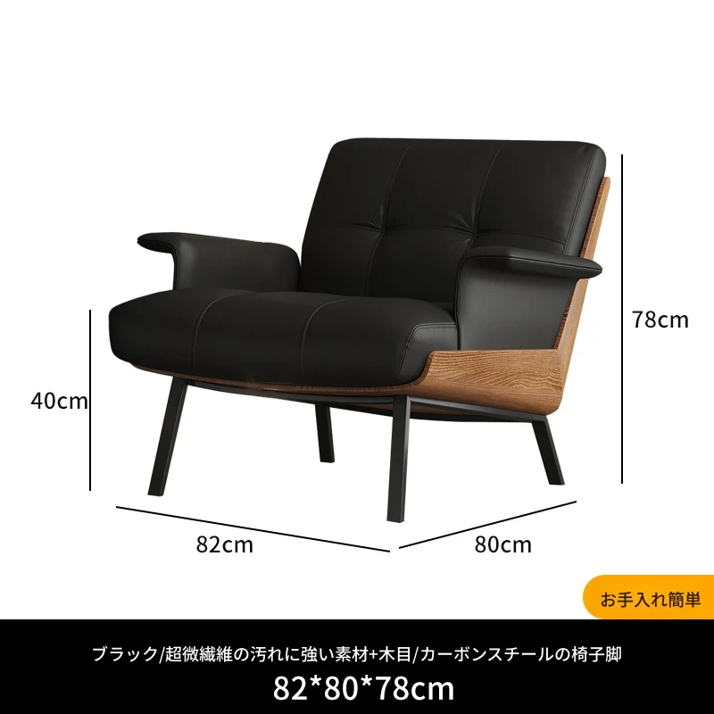 ソファチェア【ブラック+ウッドテクスチャー】【アーム付き】 汚れ防止生地