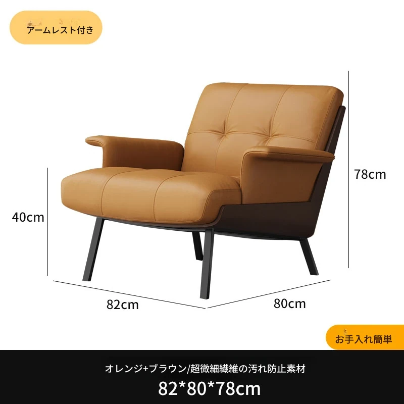 ソファチェア【オレンジ+ブラウン】【アーム付き】汚れ防止生地